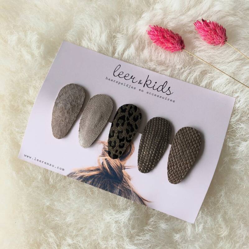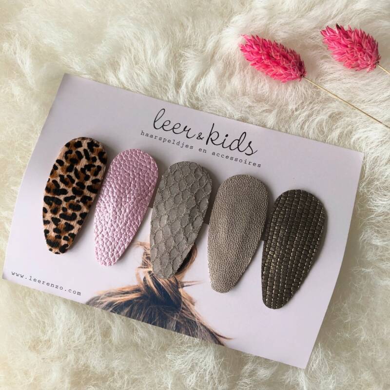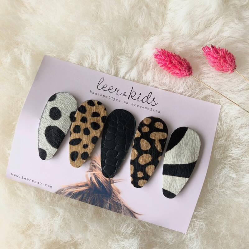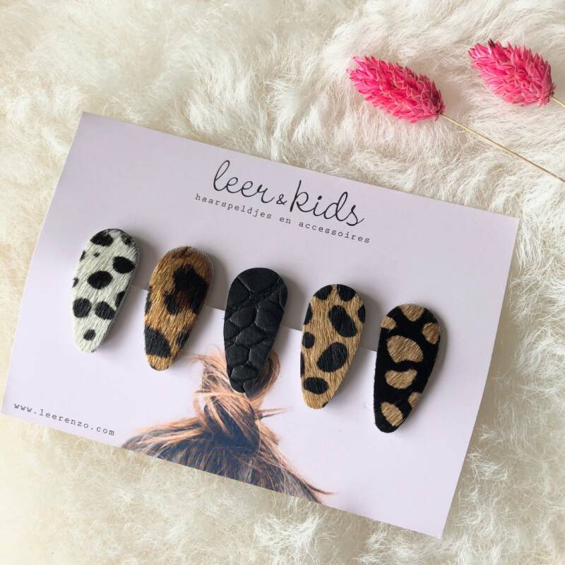 LEER&ZO heeft sinds kort een nieuwe kinderlijn erbij LEER&KIDS. Deze lijn is ontstaan door de kindertasjes die ik maakte voor mijn eigen dochter. En daar is sinds kort het kindertasje Mini aan toegevoegd. En om de set compleet te maken zijn er nu ook schattige haarspeldjes verkrijgbaar in mooie dierenhuid printjes zoals luipaard en dalmatiër en mooie kleuren leer ♡