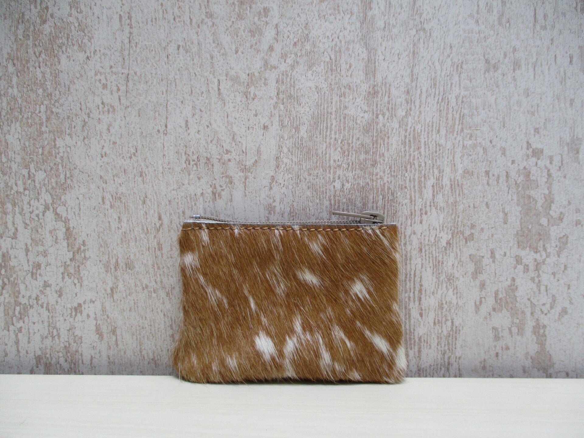 Deze handige leren sleuteletui gemaakt van cognac/wit koeienhuid houdt al je belangrijke sleutels samen. Het is een praktisch model en perfect voor het opbergen van ID kaart, bankpas, kleingeld en voorzien van sleutelring. Sluit doormiddel van een rits aan de bovenzijde.