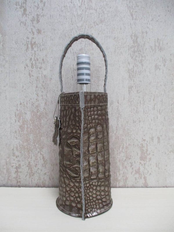 Stijlvolle en luxe leren wijnkoeler gemaakt van een sublieme kwaliteit goud leer met croco print. De wijnkoelers van LEER&ZO zijn uniek en handgemaakt in eigen atelier.