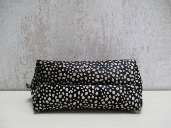Schitterende handgemaakte ruime toilettas van sublieme kwaliteit koeienhuid met cheetah print. Het is een handig rond model waardoor je een goed overzicht hebt op al je make-up en toilet spulletjes. Door de brede bodem is de toilettas lekker ruim, en aan de bovenzijde voorzien van stevige YKK rits.
