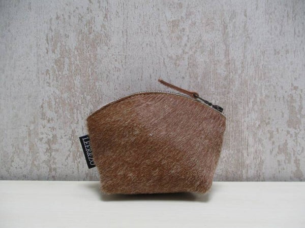 Koeienhuid make-up tasje cognac/wit