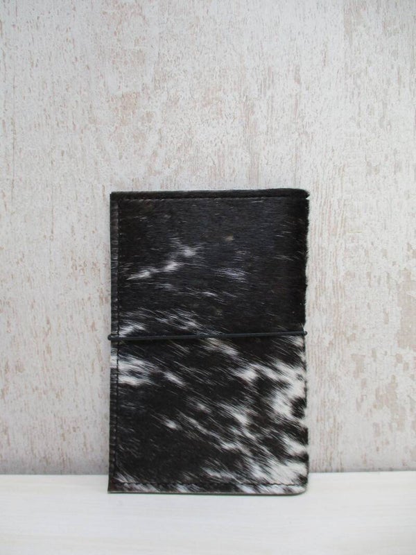 Deze stoere en stijlvolle paspoorthoes is gemaakt van prachtig zwart/wit koeienhuid. En is geschikt voor 2 paspoorten, briefgeld en reistickets. Er zitten ook nog 2 aparte vakken in voor bankpassen. En sluit heel handig met een elastiek.