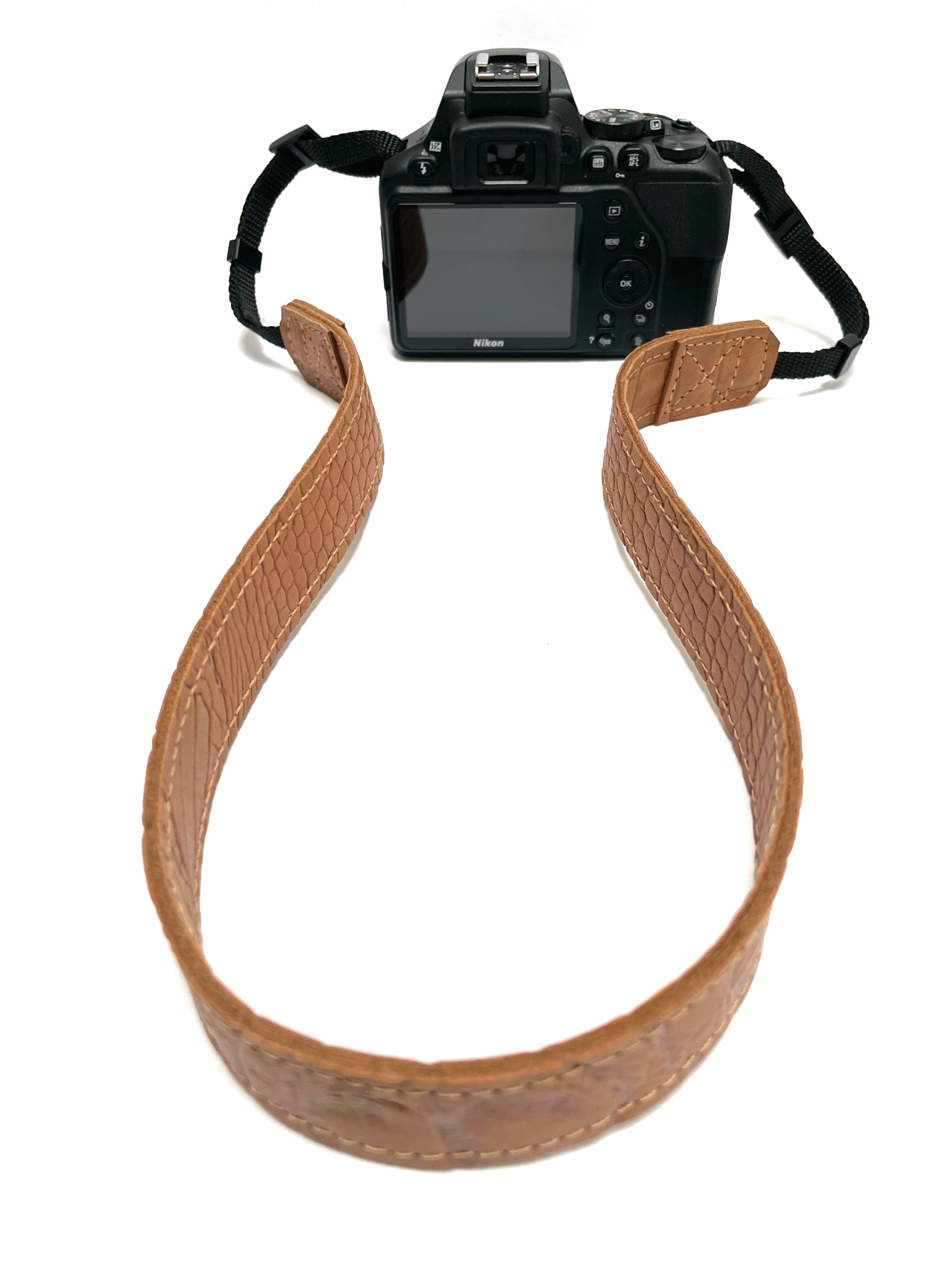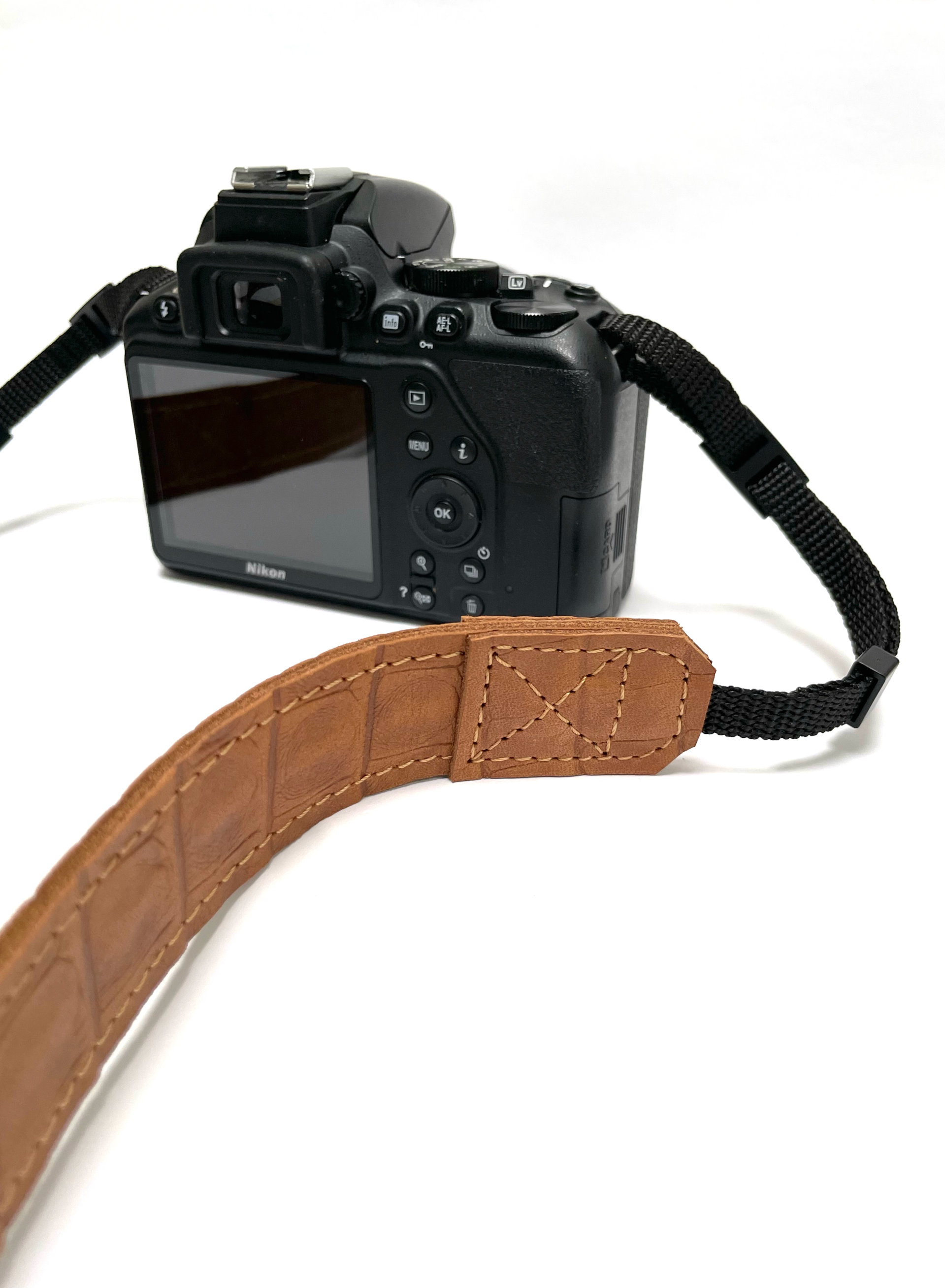 Ga stijlvol op pad met deze stoere camerariem. De camerariem is gemaakt van cognac leer met croco print. Aan de onderzijde voorzien van zacht soepel cognac leer. De strap wordt geleverd met universele verstelbare gespen, zodat die voor vrijwel geschikt is voor de meeste camera merken (DLSR / Nikon/ Canon / Sony) De breedte van de bevestiging aan de camera is 1 cm.