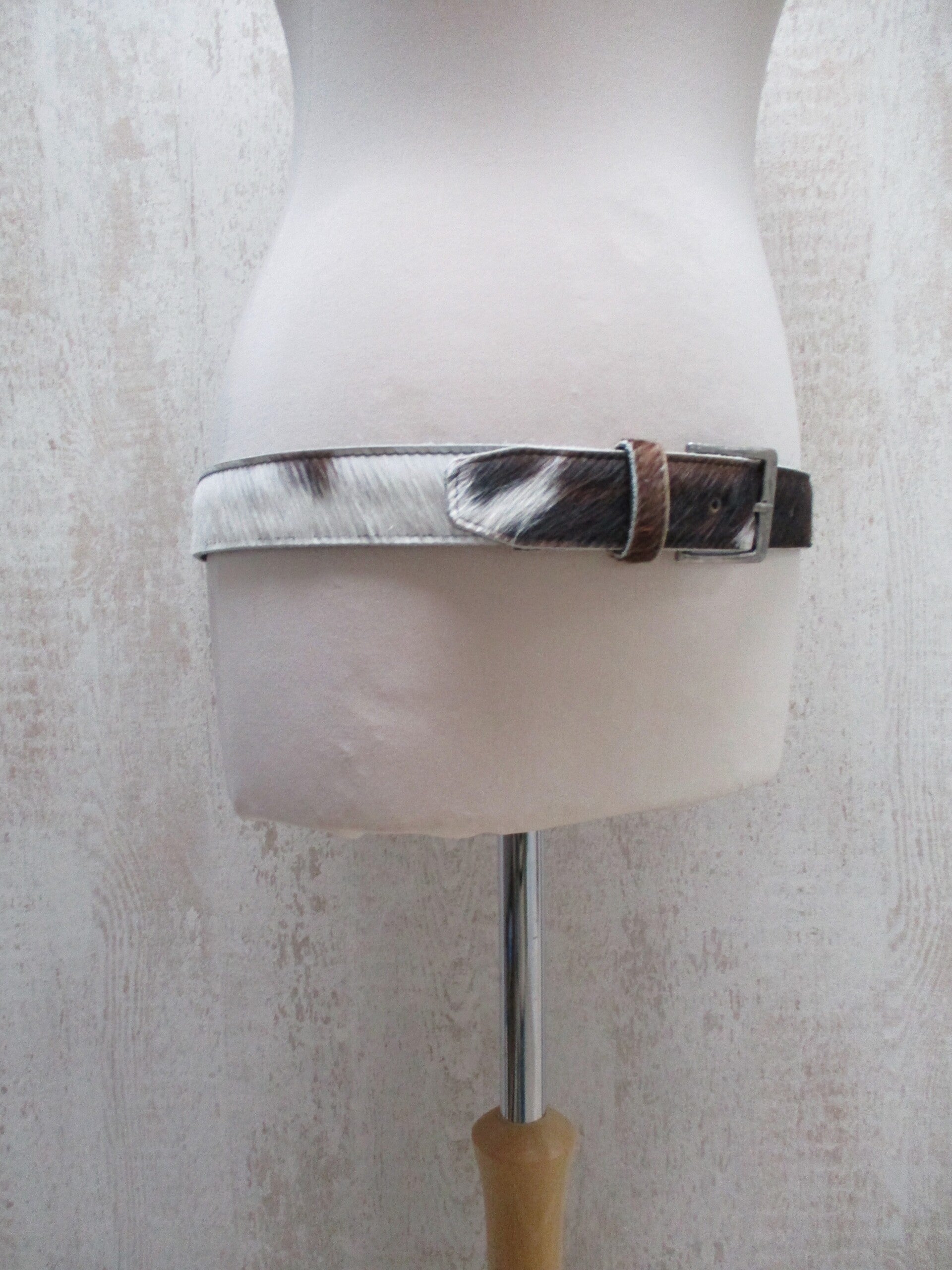 Mooie tricolor koeienhuid riem van hoog kwaliteit. De riem kan zowel door dames als heren gedragen worden. Voorzien van een mooie zilveren gesp en verkrijgbaar in diverse kleuren. De breedte van de riem is 4 cm.