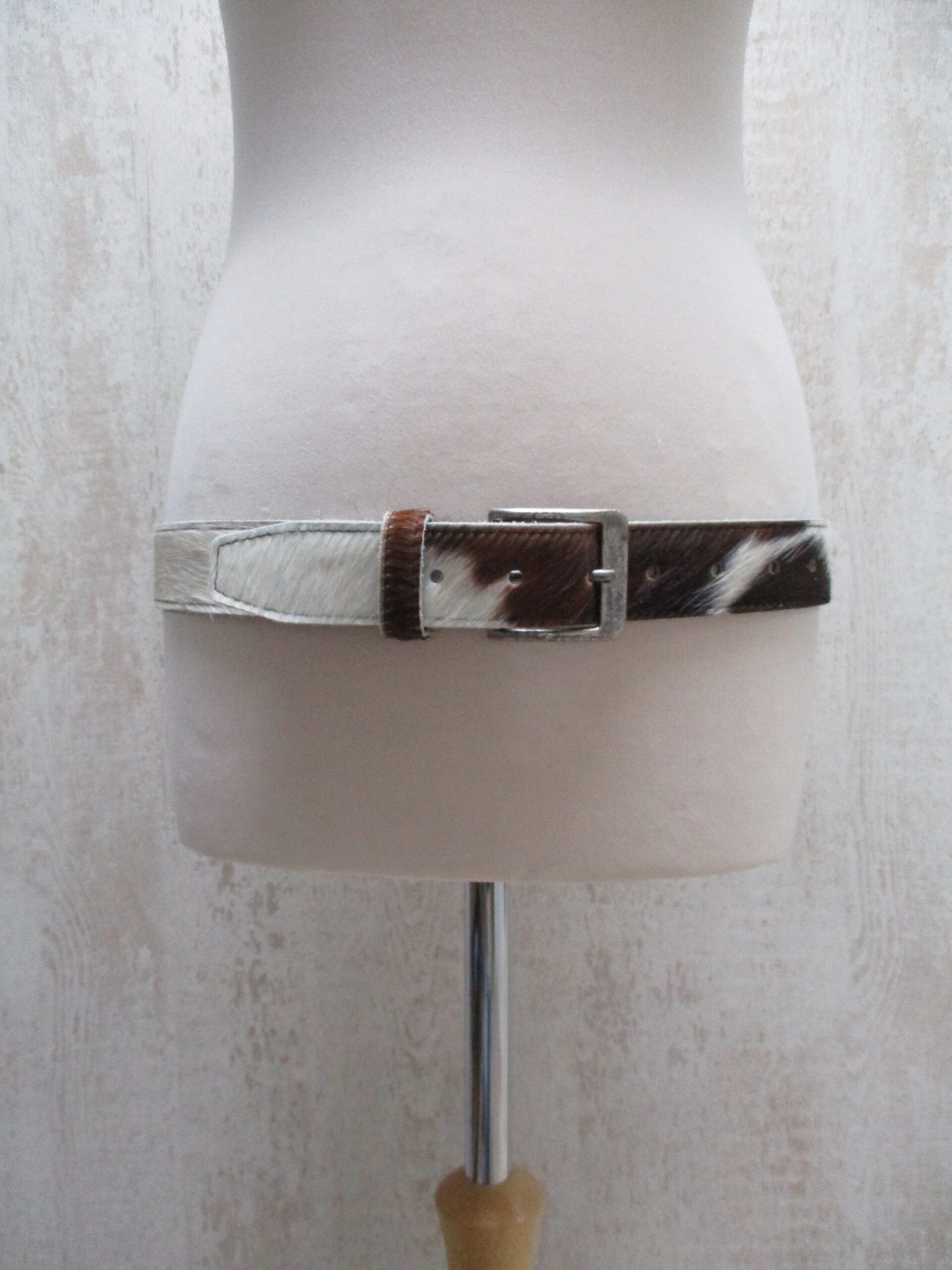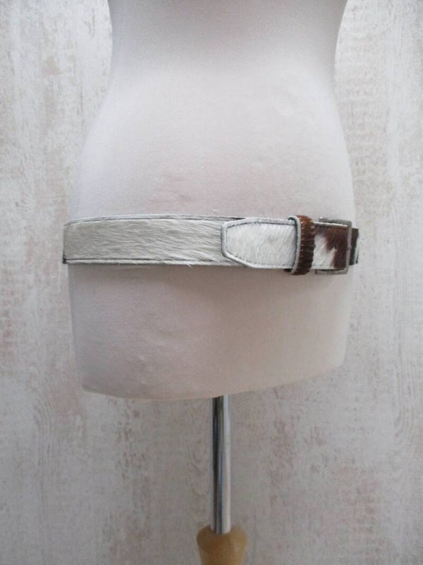Mooie tricolor koeienhuid riem van hoog kwaliteit. De riem kan zowel door dames als heren gedragen worden. Voorzien van een mooie zilveren gesp en verkrijgbaar in diverse kleuren. De breedte van de riem is 4 cm.