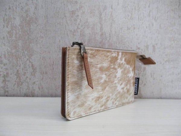 Cognac leren portemonee cognac/wit koeienhuid