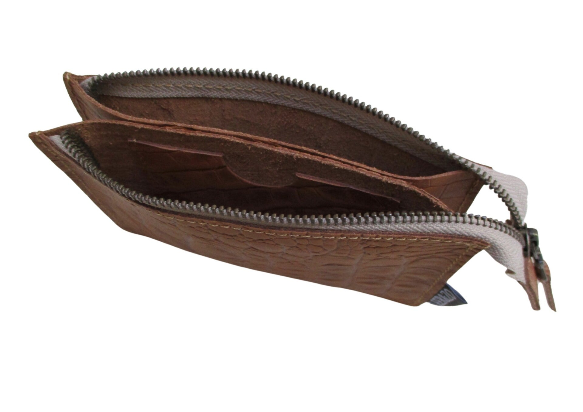 Super handzaam en multifunctioneel leren portemonnee gemaakt van mooi cognac leer met croco print. Het handige van de portemonnee is dat deze uit 2 aparte vakken bestaat. Dus 2x zoveel ruimte!