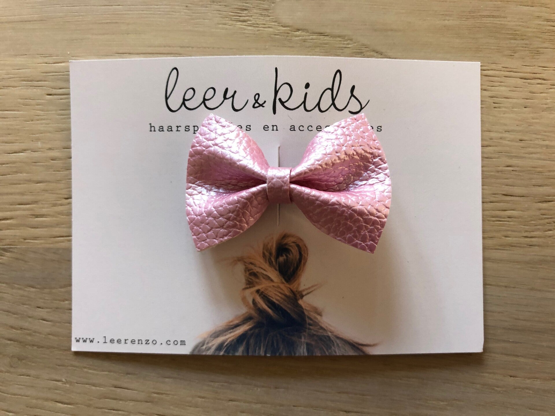 Schattig handgemaakt roze leren alligator strikje. Handig om de losse haartjes bij elkaar te houden. En leuk bij een vlecht of knotje ♡ Maat 5 cm