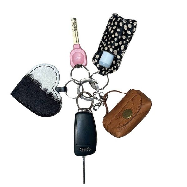 Super schattige leren sleutelhanger. De sleutelhanger is gemaakt van mooi koeienhuid met luipaard print, en voorzien van zwart leer op de achterzijde. De sleutelhanger is verstevigd aan de binnenzijde. Leuk voor aan je sleutelbos of tas.