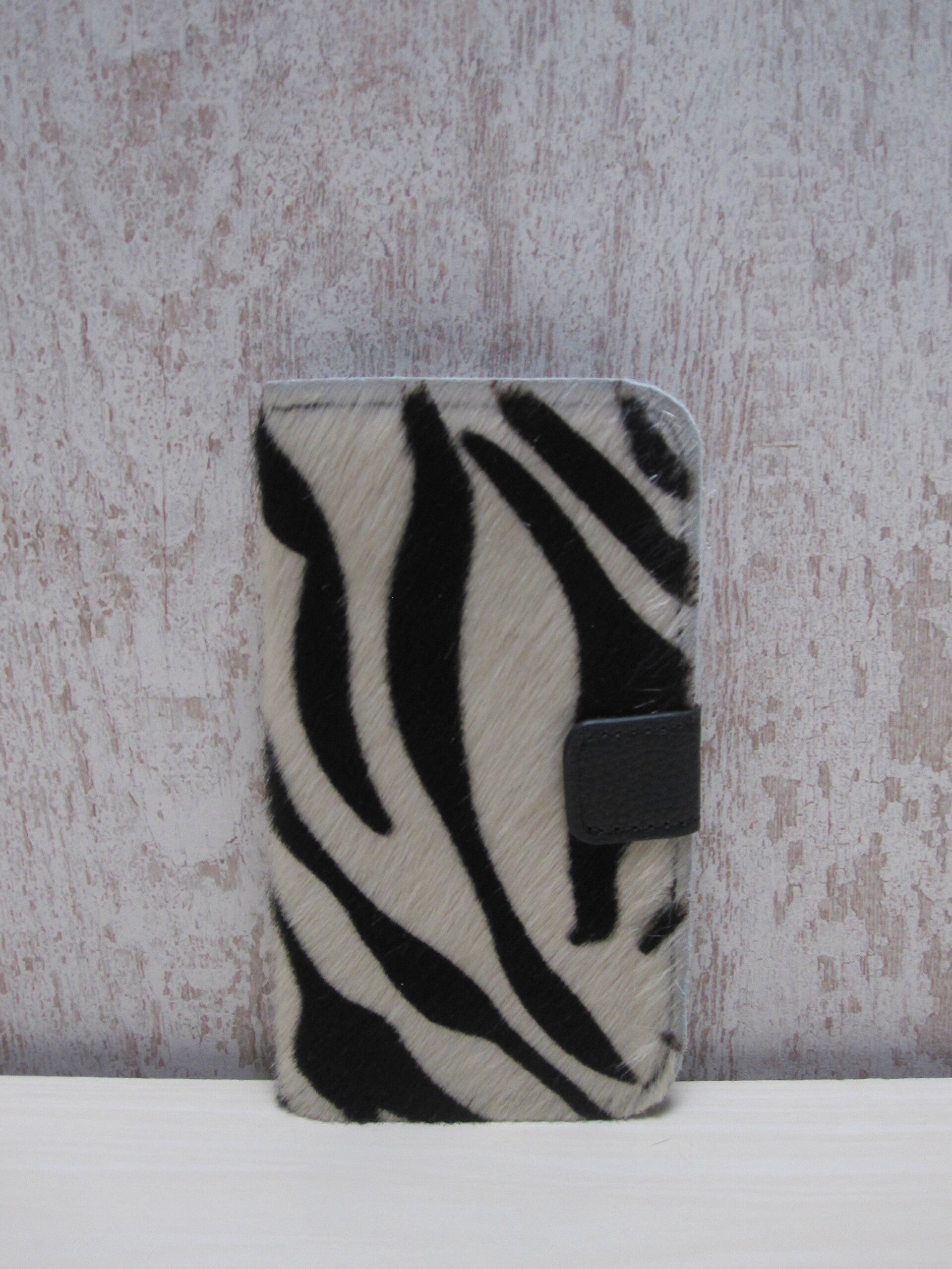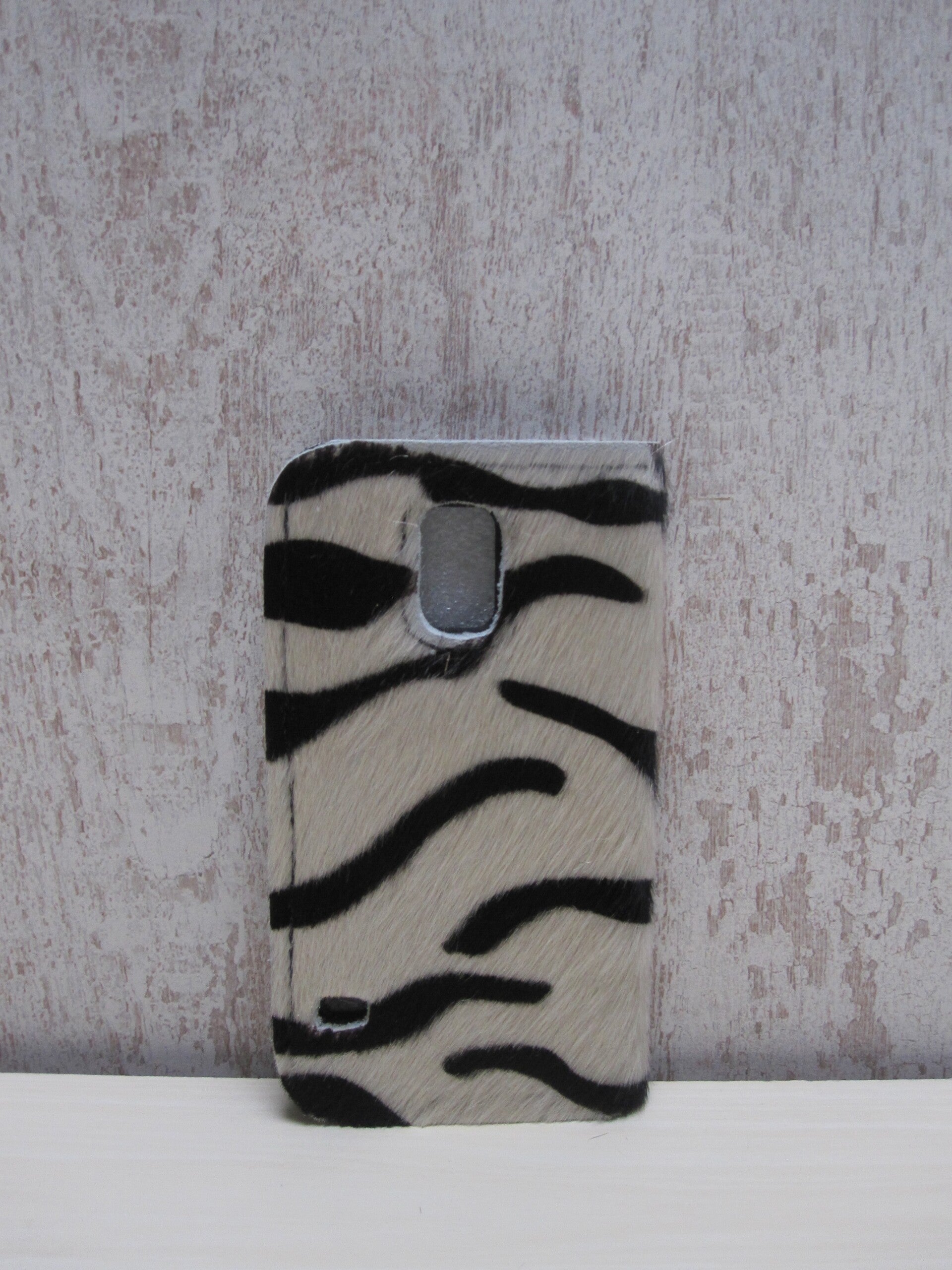 Mooie handgemaakte book-case geschikt voor de Samsung S5. De book-case is gemaakt van mooie kwaliteit koeienhuid met zebra print. Voorzien van handige magnetische sluiting en biedt ruimte voor extra pasjes.