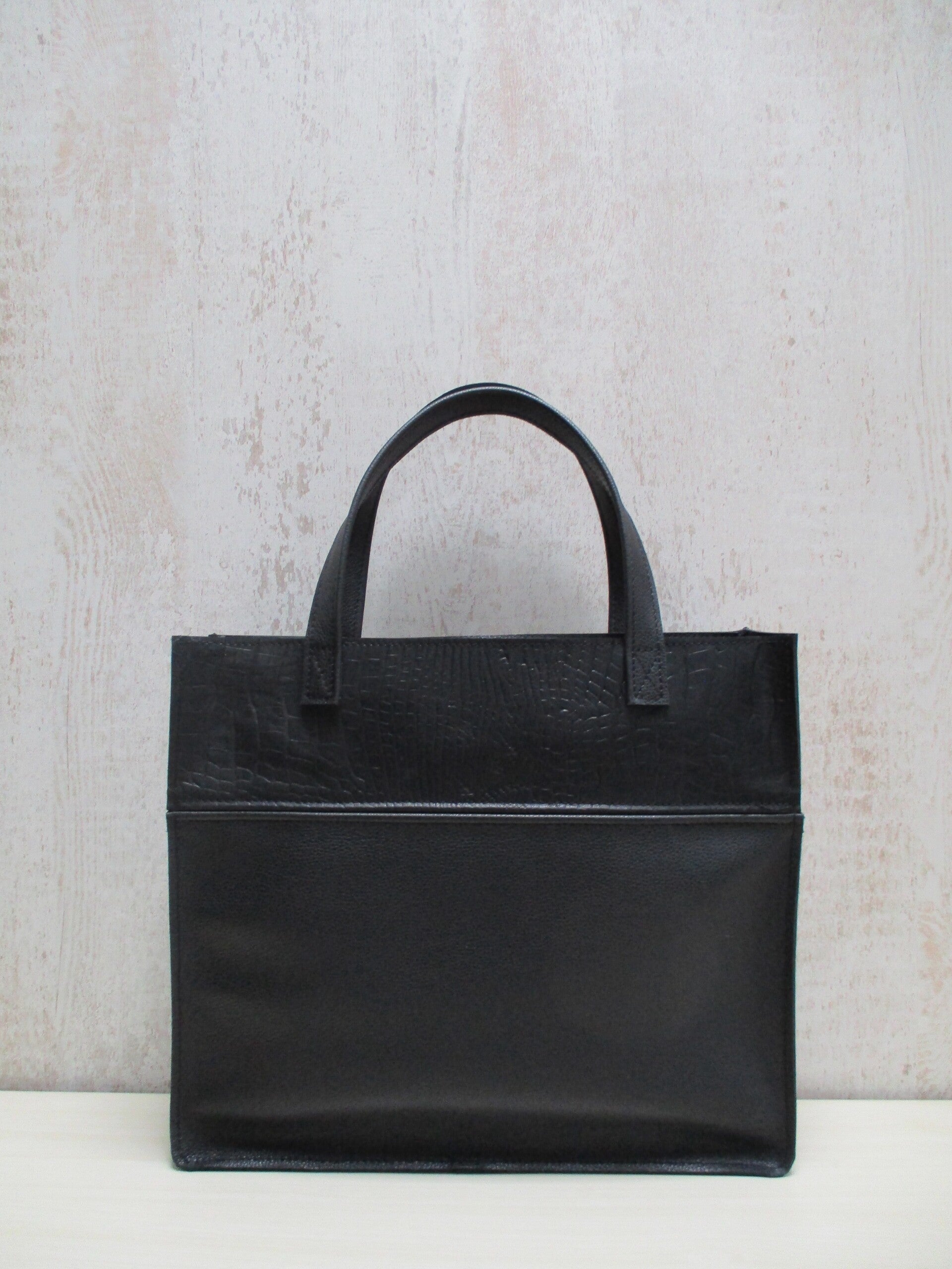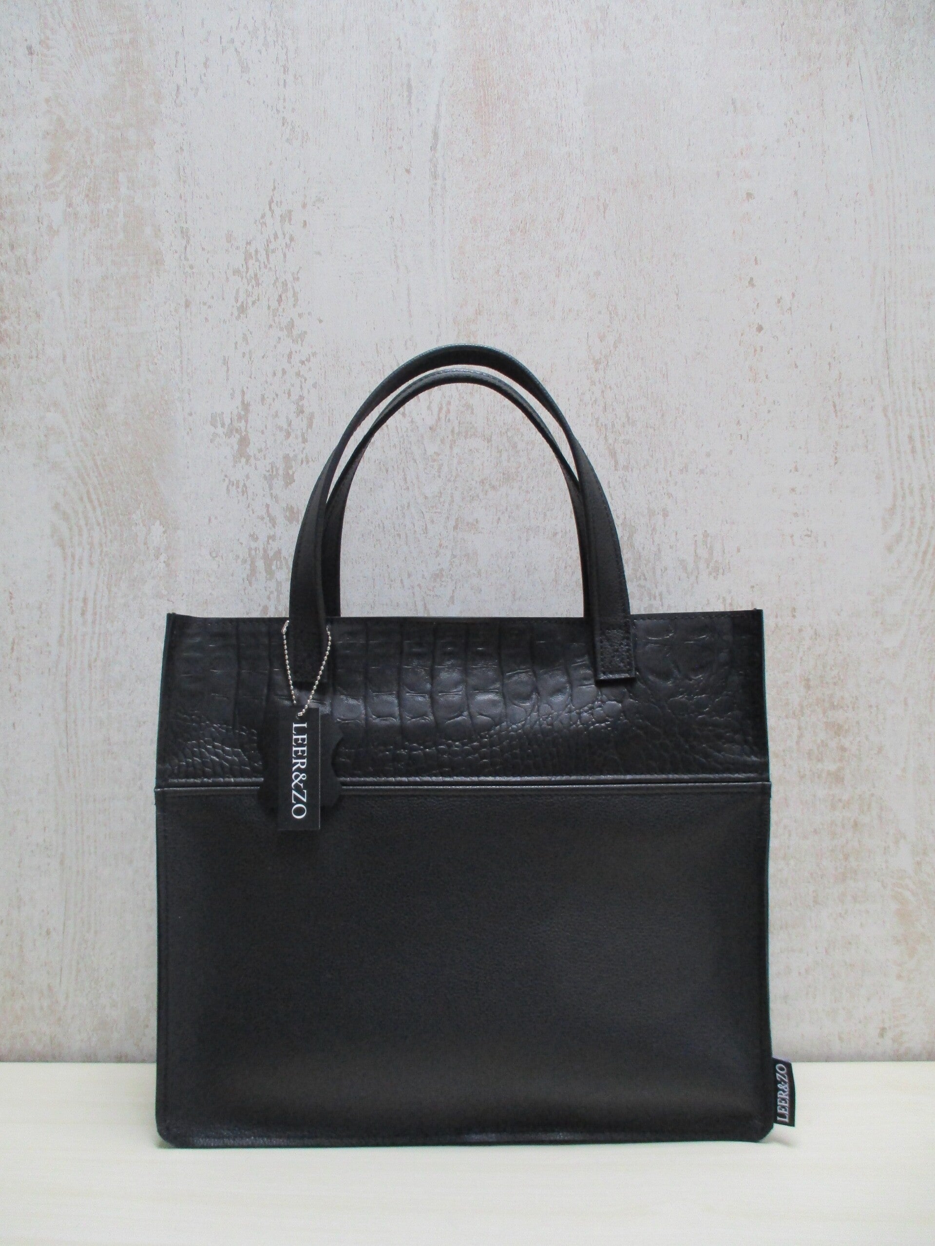 Prachtige leren laptop tas gemaakt van sublieme kwaliteit stevig zwart leer. Met aan de bovenzijde uniek zwart croco print. Deze geweldige tas is multifunctioneel en heerlijk ruim. Te gebruiken als laptoptas/studietas of gewoon als shopper. Er is ruimte genoeg voor laptop, schrijfmap, agenda en andere spullen.