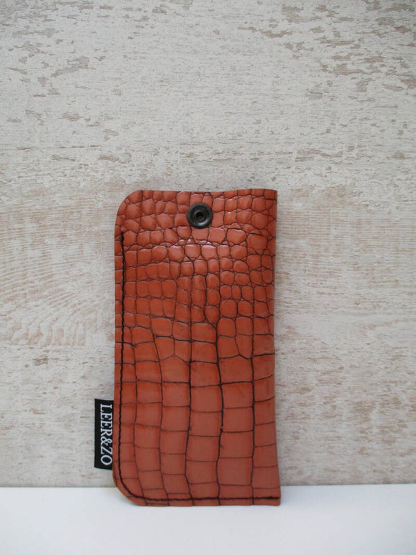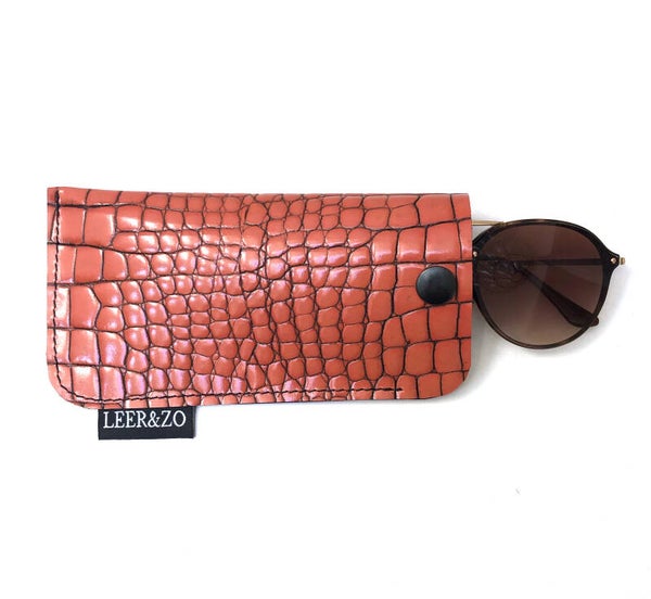 Bescherm je bril of zonnebril in deze stijlvolle leren brillenhoes, gemaakt van prachtig oudroze leer met print. In deze brillenhoes is je bril netjes en veilig beschermd tegen vallen, stoten en krassen. Sluit doormiddel van een drukknoop aan de bovenzijde.