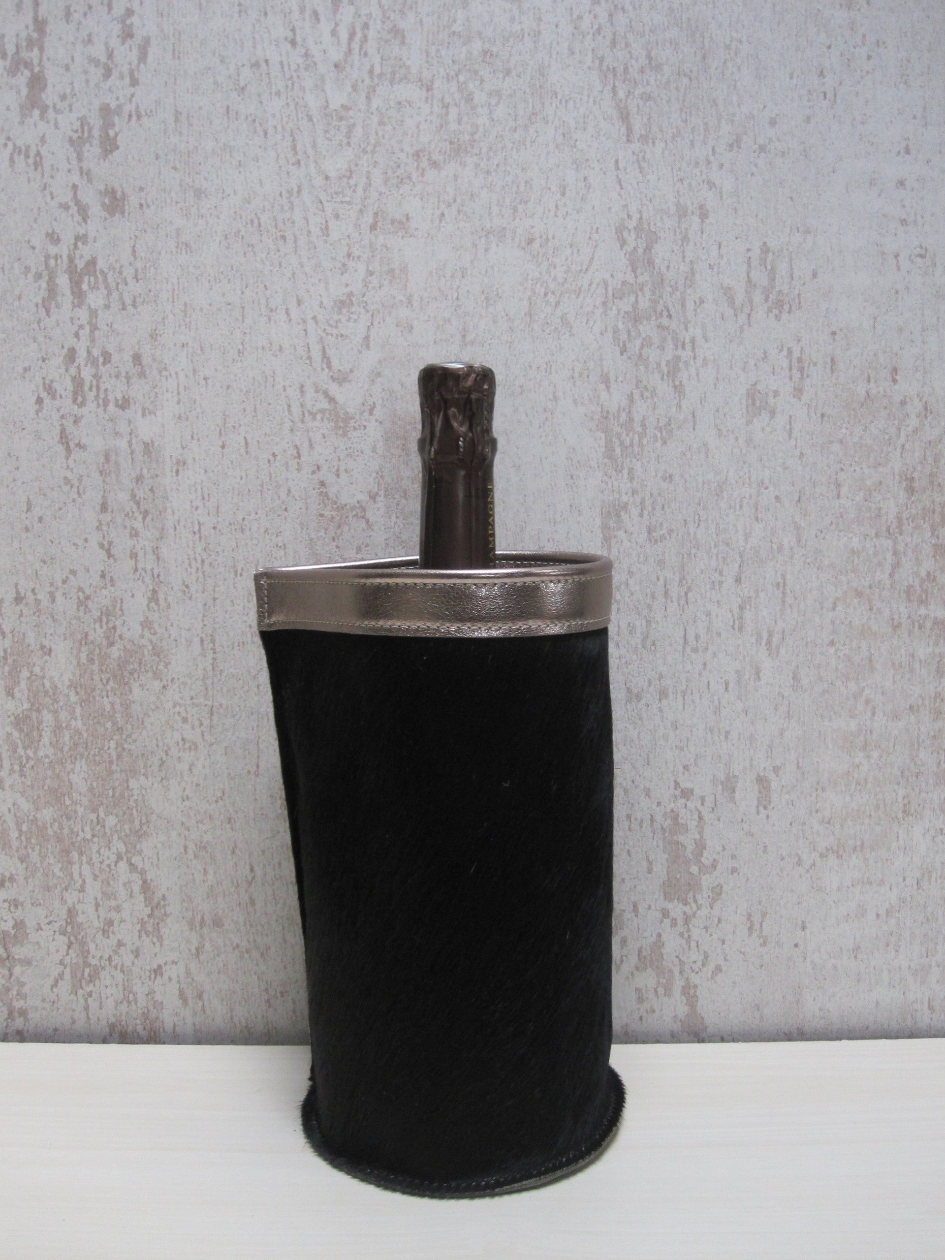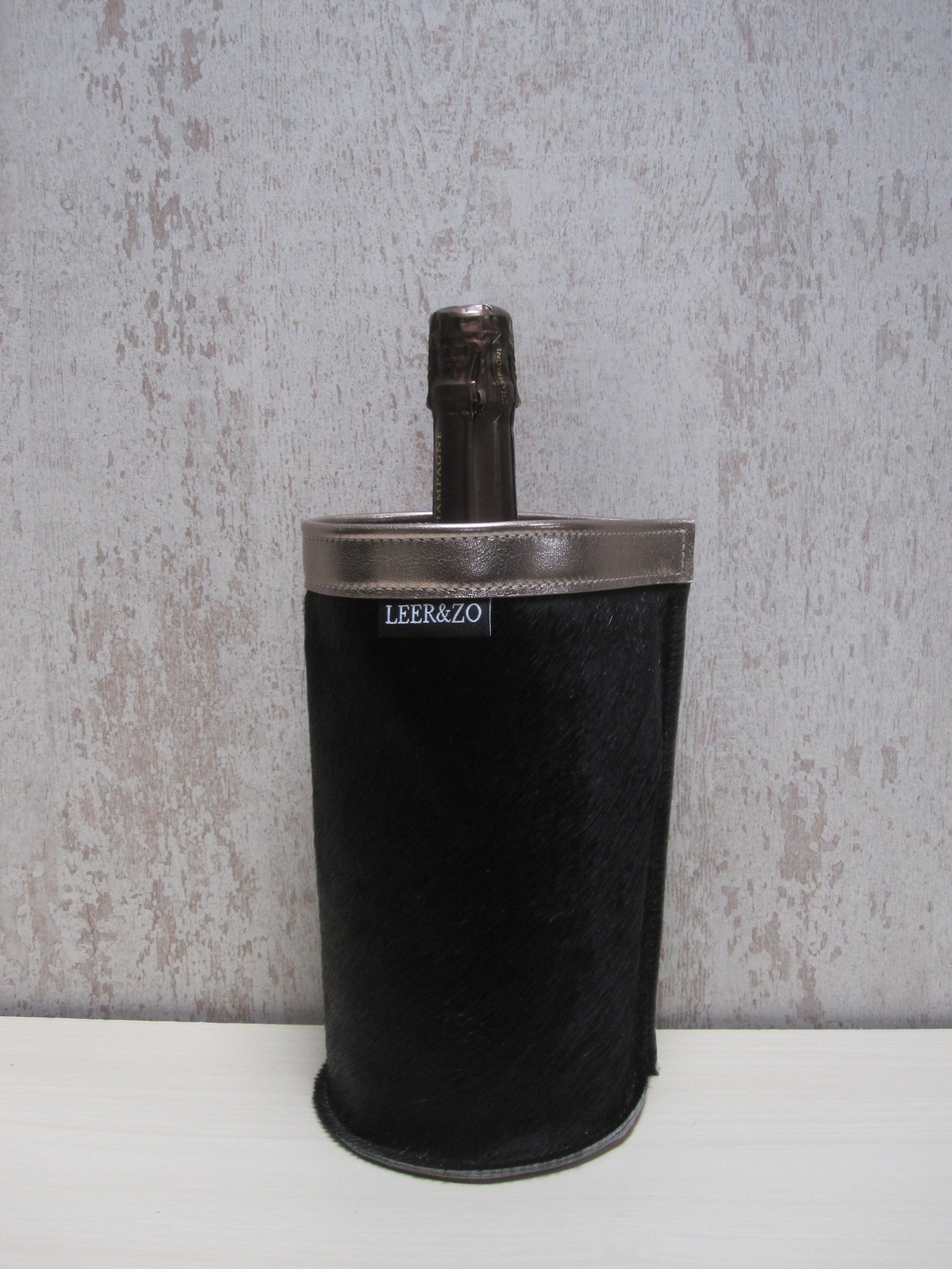 Stijlvolle en originele champagne koeler gemaakt van een sublieme kwaliteit zwart koeienhuid en prachtig rosé leer. De champagne koelers van LEER&ZO zijn uniek en handgemaakt in eigen atelier. Onwijs leuk cadeau om te geven of te krijgen!