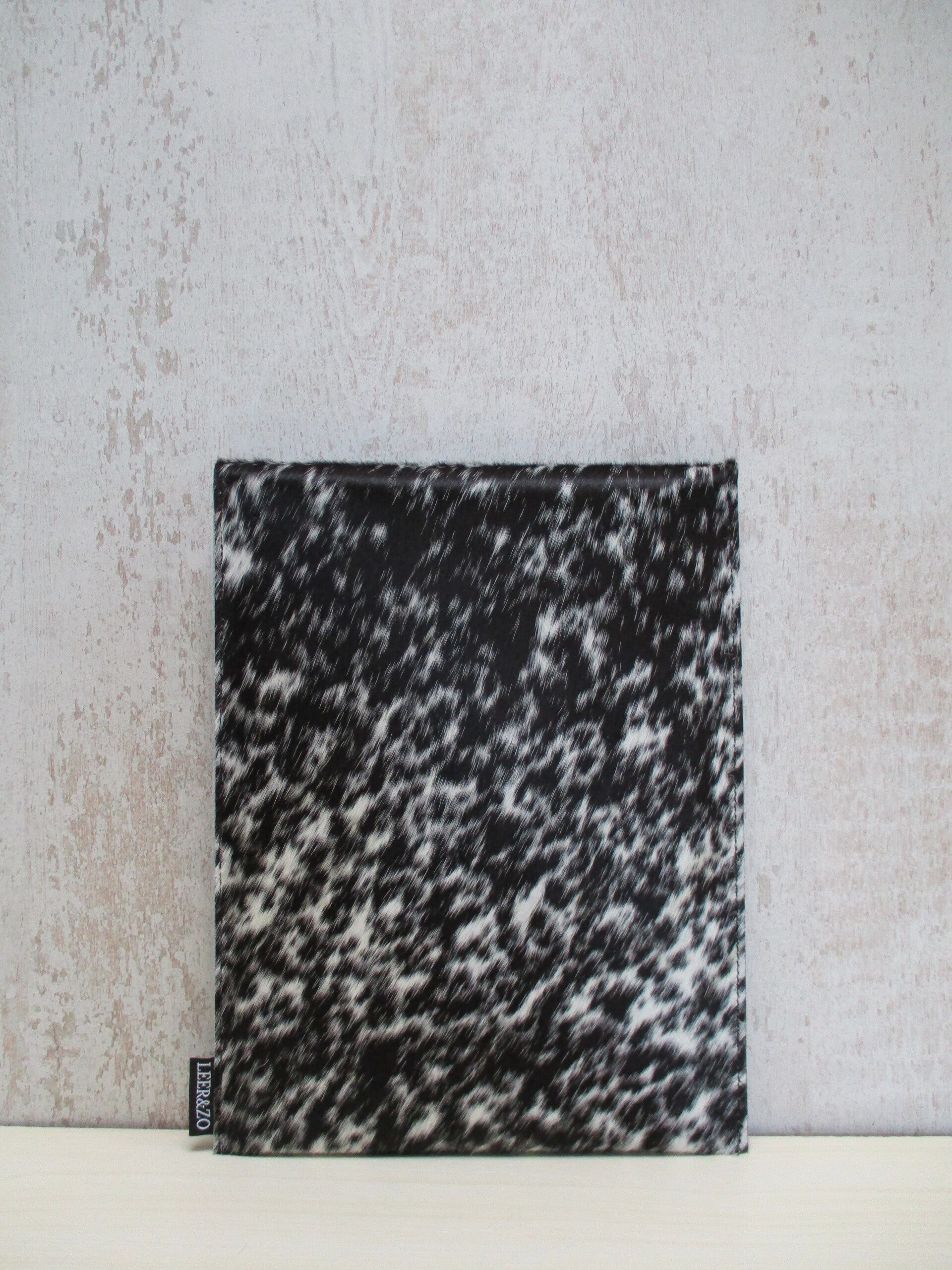 Mooie en stijlvolle laptop hoes voor de Apple MacBook 13 inch. De hoes is handgemaakt van schitterend zwart/wit koeienhuid. De hoes is perfect om je laptop veilig en krasvrij in op te bergen. Sluit doormiddel van een flap met klittenband sluiting. Heeft op de voorkant een klein kaal plekje zie foto 3.