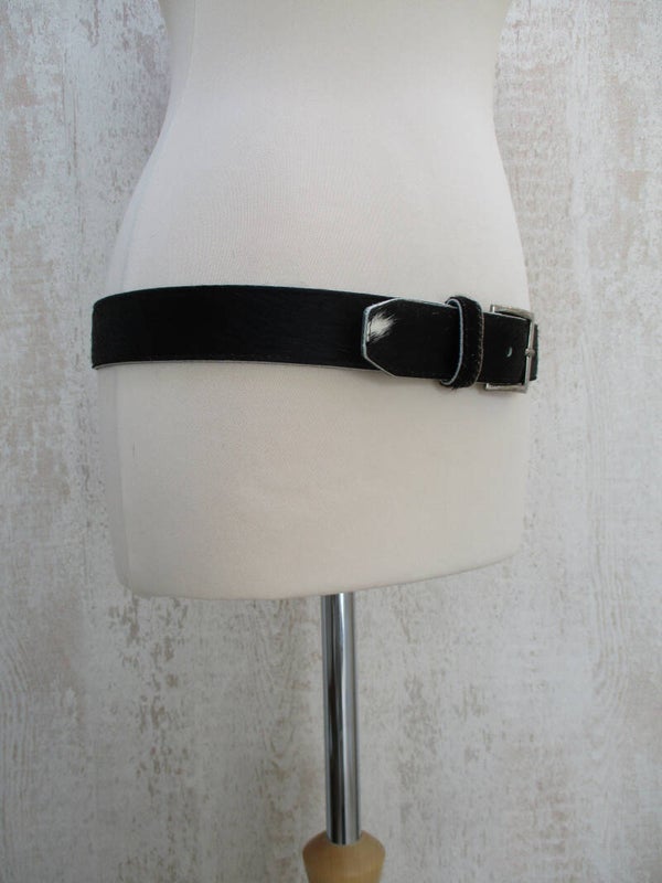 Mooie stoere zwart/wit koeienhuid riem van hoog kwaliteit. De riem kan zowel door dames als heren gedragen worden. Voorzien van een mooie zilveren gesp en verkrijgbaar in diverse keuren. De breedte van de riem is 4 cm.