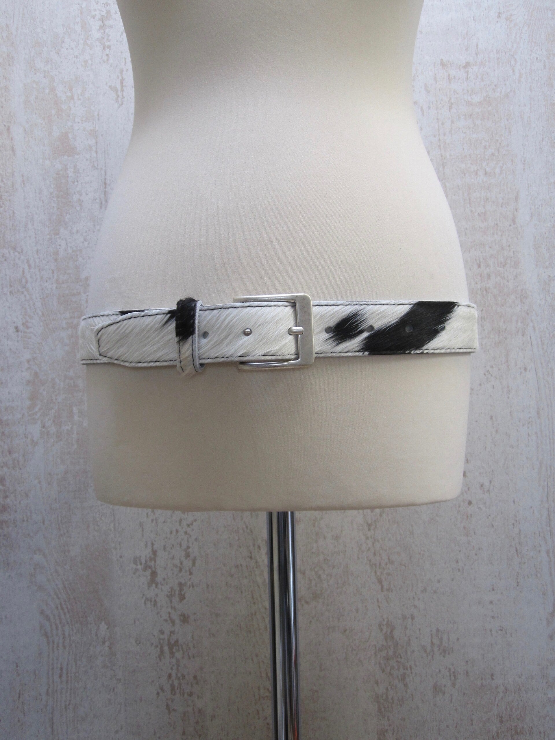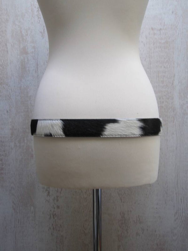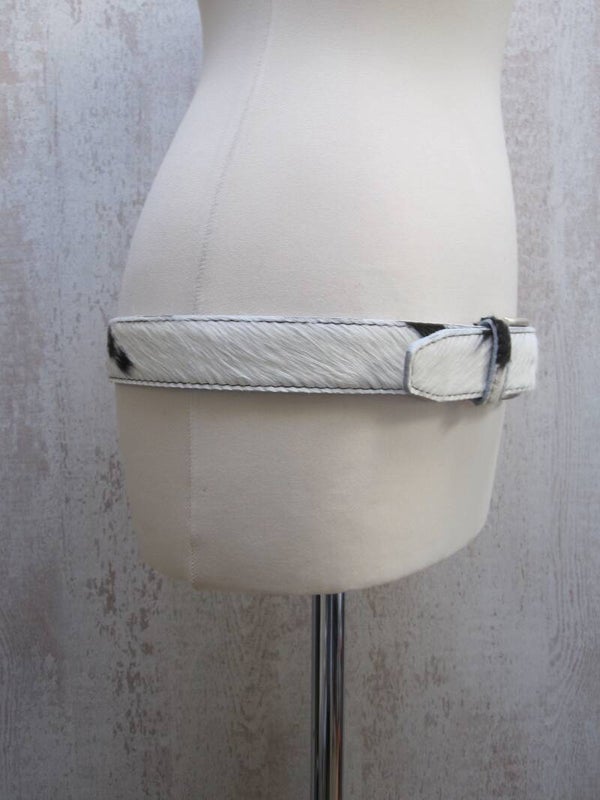 Mooie stoere zwart/wit koeienhuid riem van hoog kwaliteit. De riem kan zowel door dames als heren gedragen worden. Voorzien van een mooie zilveren gesp en verkrijgbaar in diverse keuren. De breedte van de riem is 4 cm.