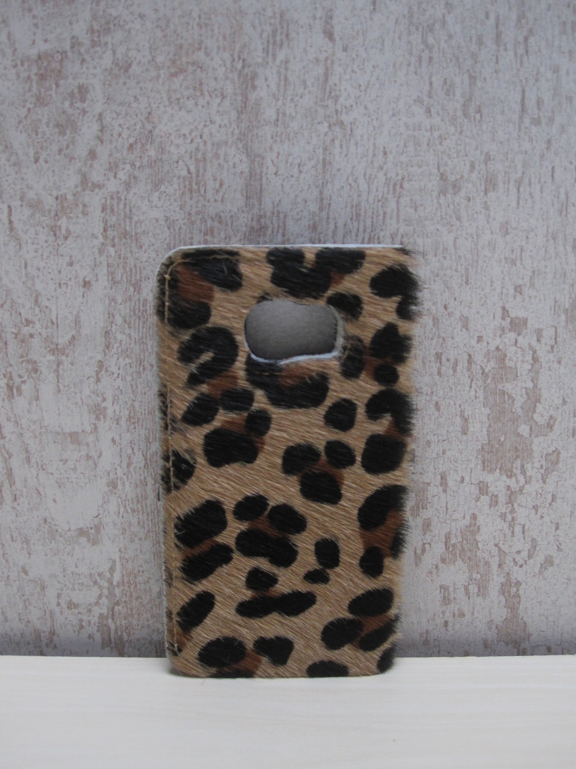 Mooie handgemaakte koeienhuid book-case geschikt voor de Samsung Galaxy S6. De book-case is gemaakt van mooie kwaliteit koeienhuid met leopard print. Voorzien van handige magnetische sluiting en biedt ruimt voor extra pasjes en briefgeld.