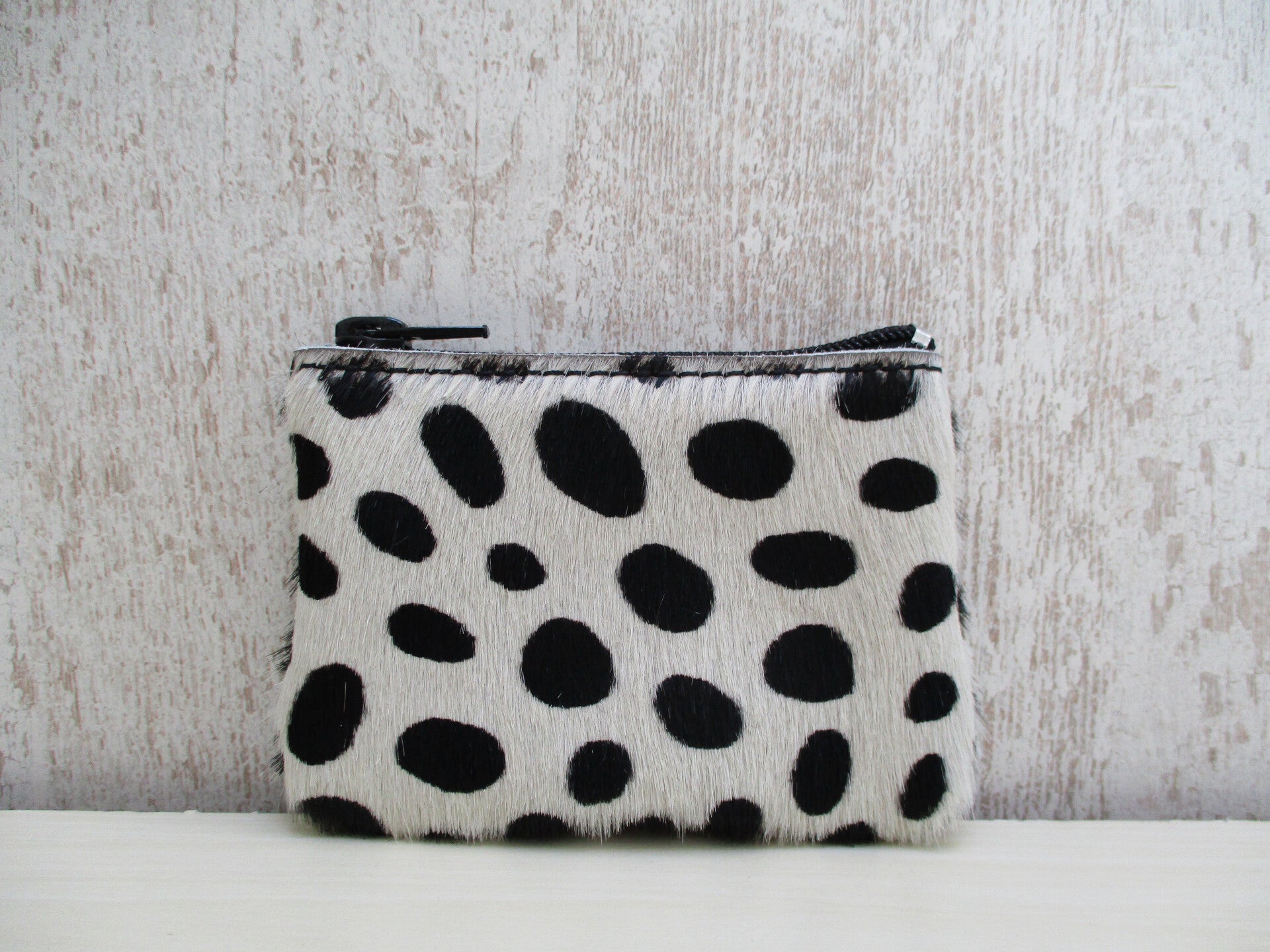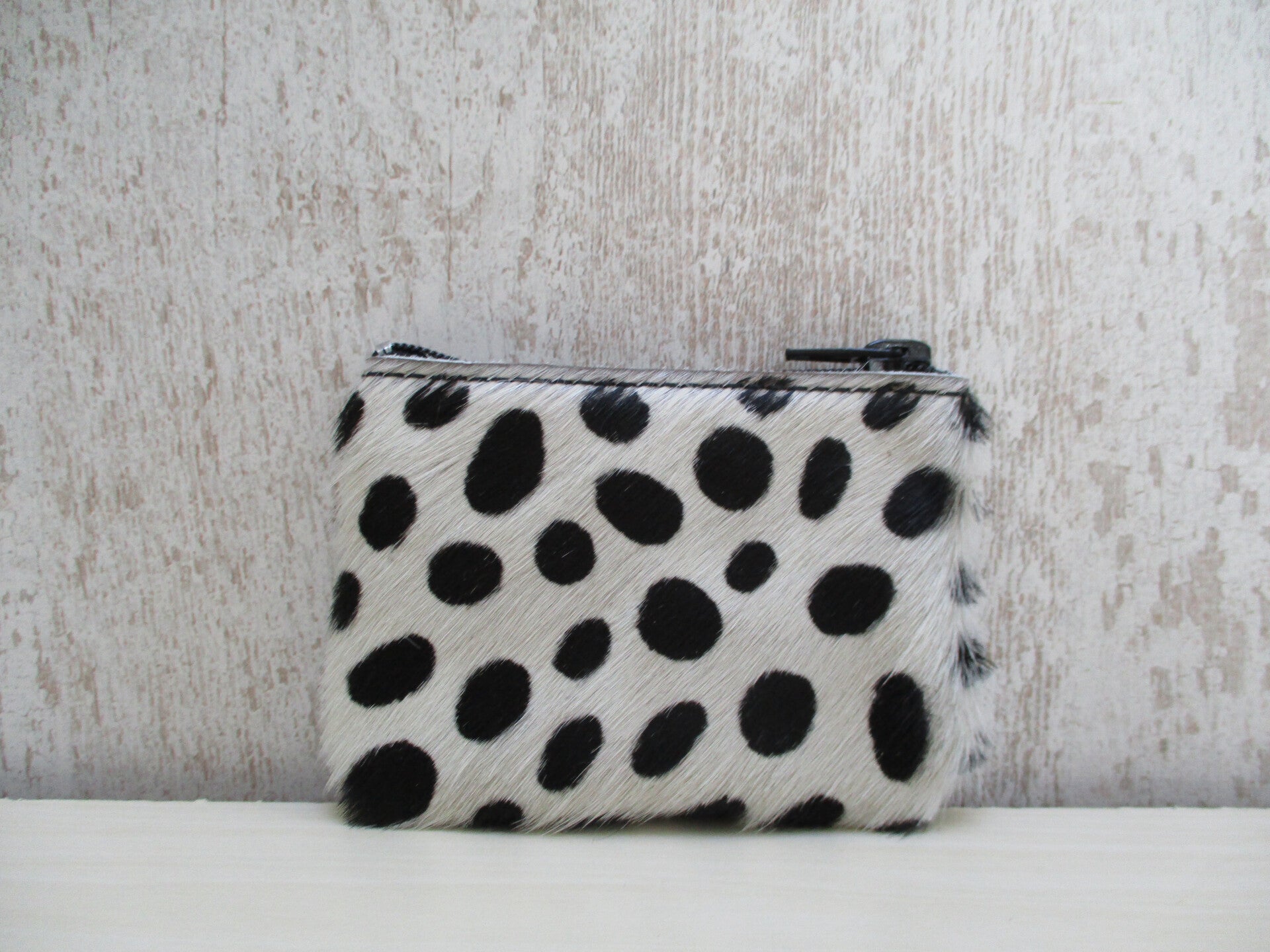 Super handige klein dalmatierprint koeienhuid sleuteletui. Het is een praktisch model en perfect voor het opbergen van ID kaart, bankpas, kleingeld en voorzien van sleutelring. Sluit doormiddel van een rits aan de bovenzijde.