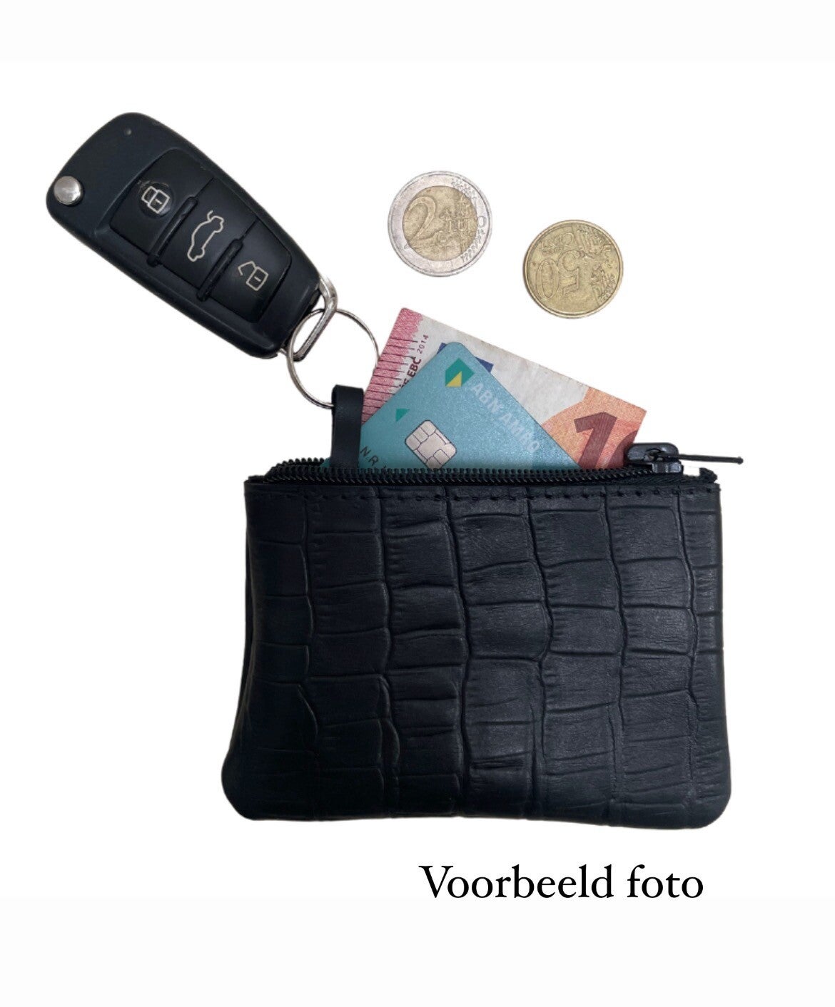 Super handige klein koeienhuid sleuteletui. Het is een praktisch model en perfect voor het opbergen van ID kaart, bankpas, kleingeld en voorzien van sleutelring. Sluit doormiddel van een rits aan de bovenzijde.