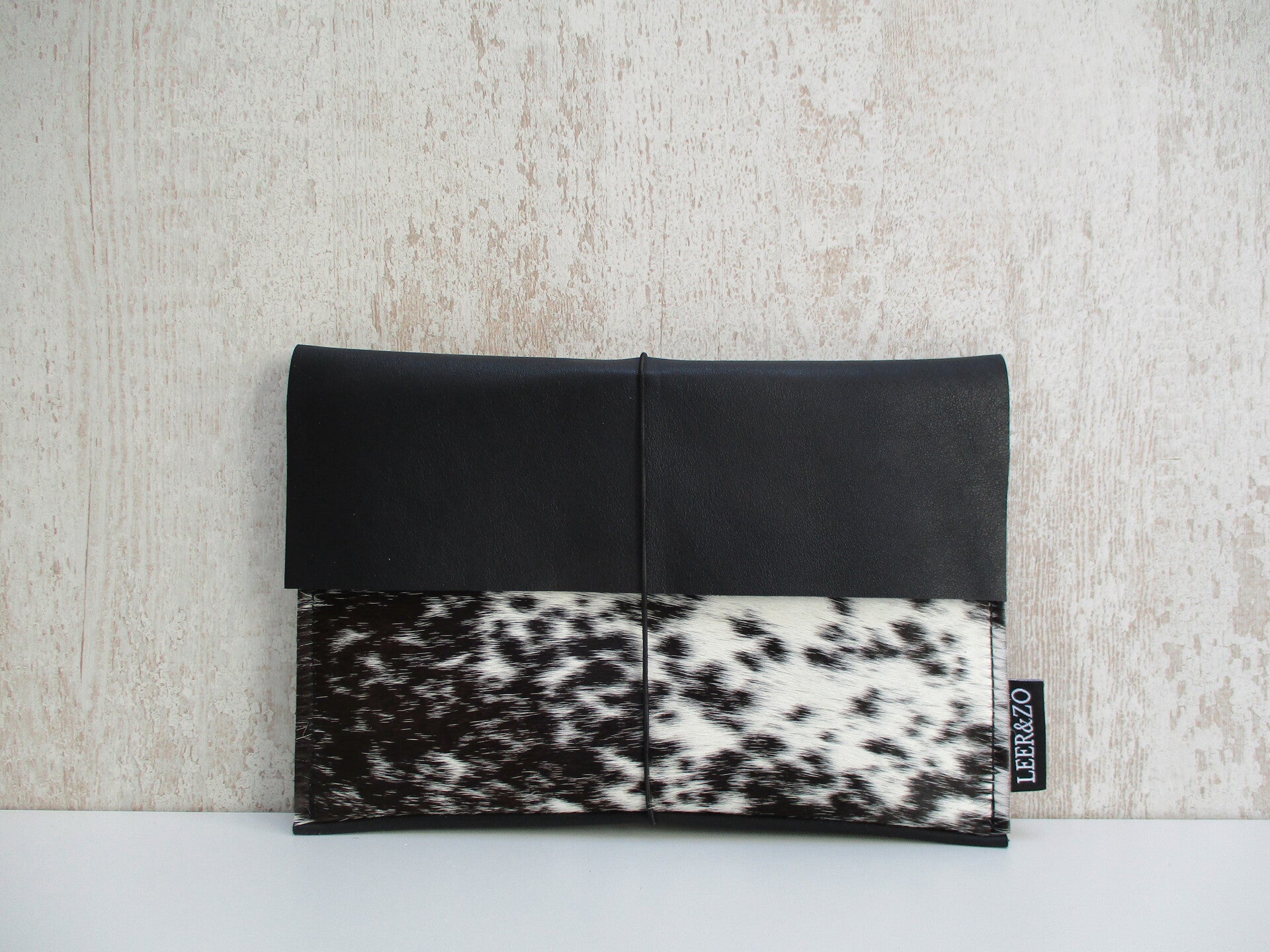 Met deze handige luieretui heb je alles bij de hand. Door de stijlvolle uitvoering ziet hij eruit als een stoere clutch. De luieretui is voorzien van 3 vakken voor het opbergen van luiers en billendoekjes. Gemaakt van mooi soepel zwart leer en met zwart/wit koeienhuid.