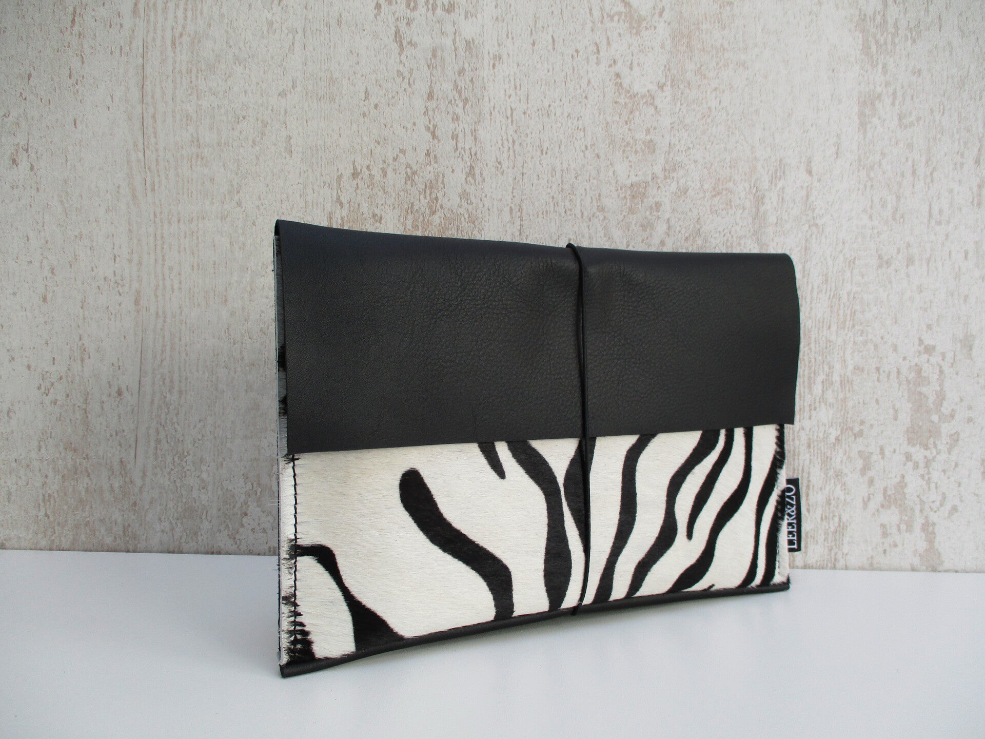 Met deze handige luieretui heb je alles bij de hand. Door de stijlvolle uitvoering ziet hij eruit als een stoere clutch. De luieretui is voorzien van 3 vakken voor het opbergen van luiers en billendoekjes. Gemaakt van mooi soepel zwart leer en zebra print koeienhuid.