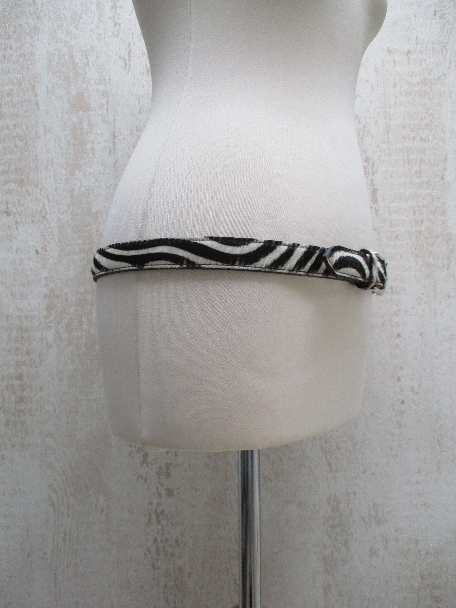Mooie stijlvolle damesriem met koeienhuid zebraprint. De riem is stoer te dragen op een jeans of lekker casual. En voorzien van een elegante zilveren gesp. De breedte van de riem is 2,5 cm.
