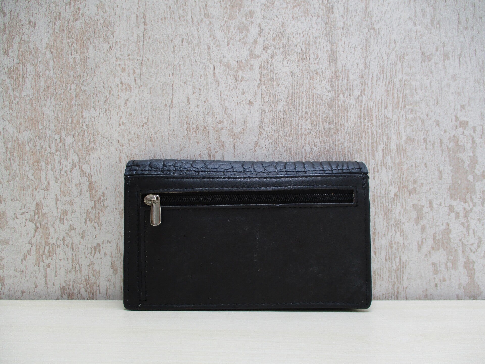 Handige kleine, compacte leren overslagportemonnee met croco print. Het is een iets smaller model, maar voorzien van extra vak. En daarom is deze portemonnee uitermate geschikt voor de wat kleinere tasjes.