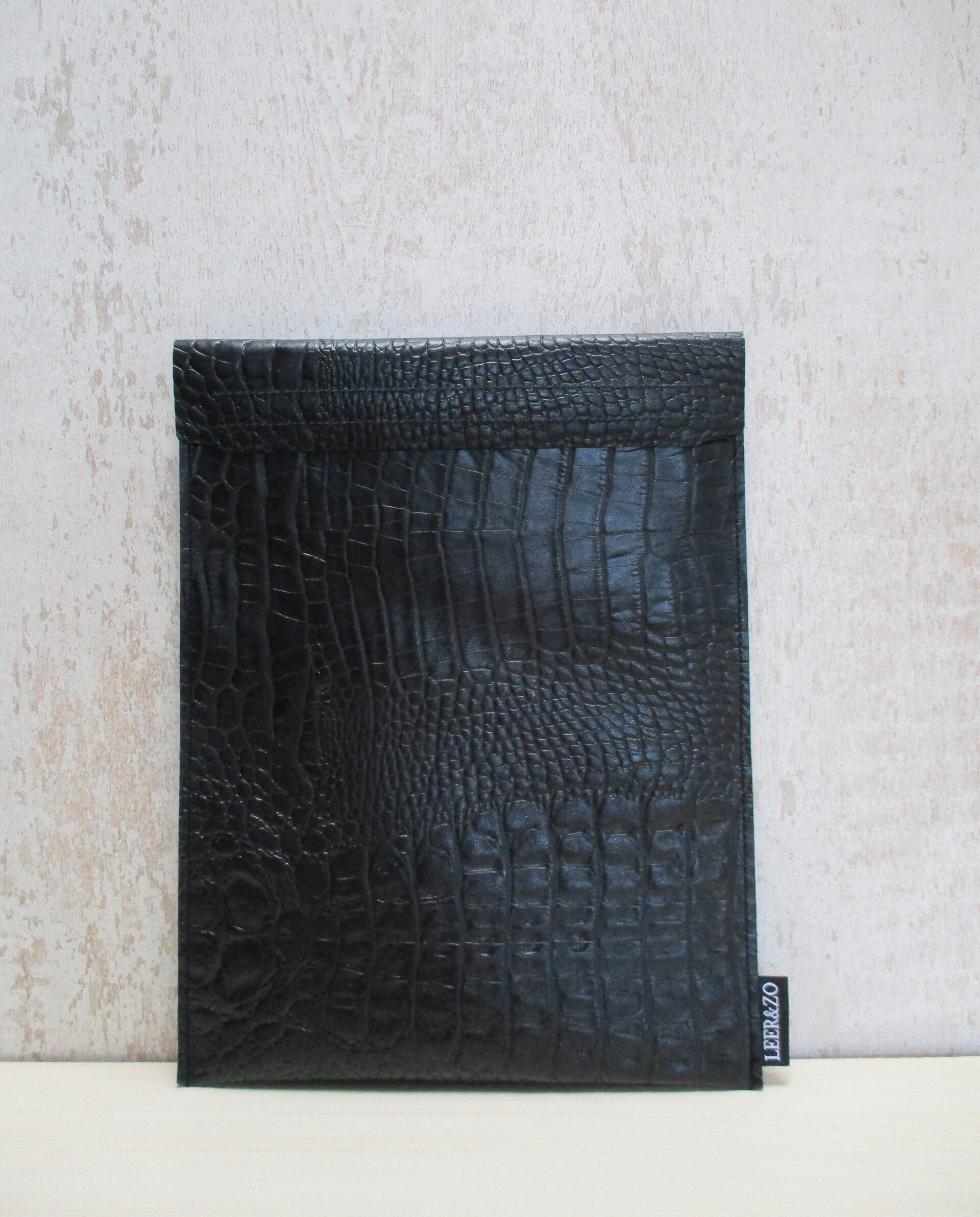 Mooie en stijlvolle leren laptop hoes voor de Apple MacBook 13 inch. De hoes is gemaakt van zwart leer met croco print. De hoes is perfect om je laptop veilig en krasvrij in op te bergen. Sluit doormiddel van een flap met klittenband sluiting.