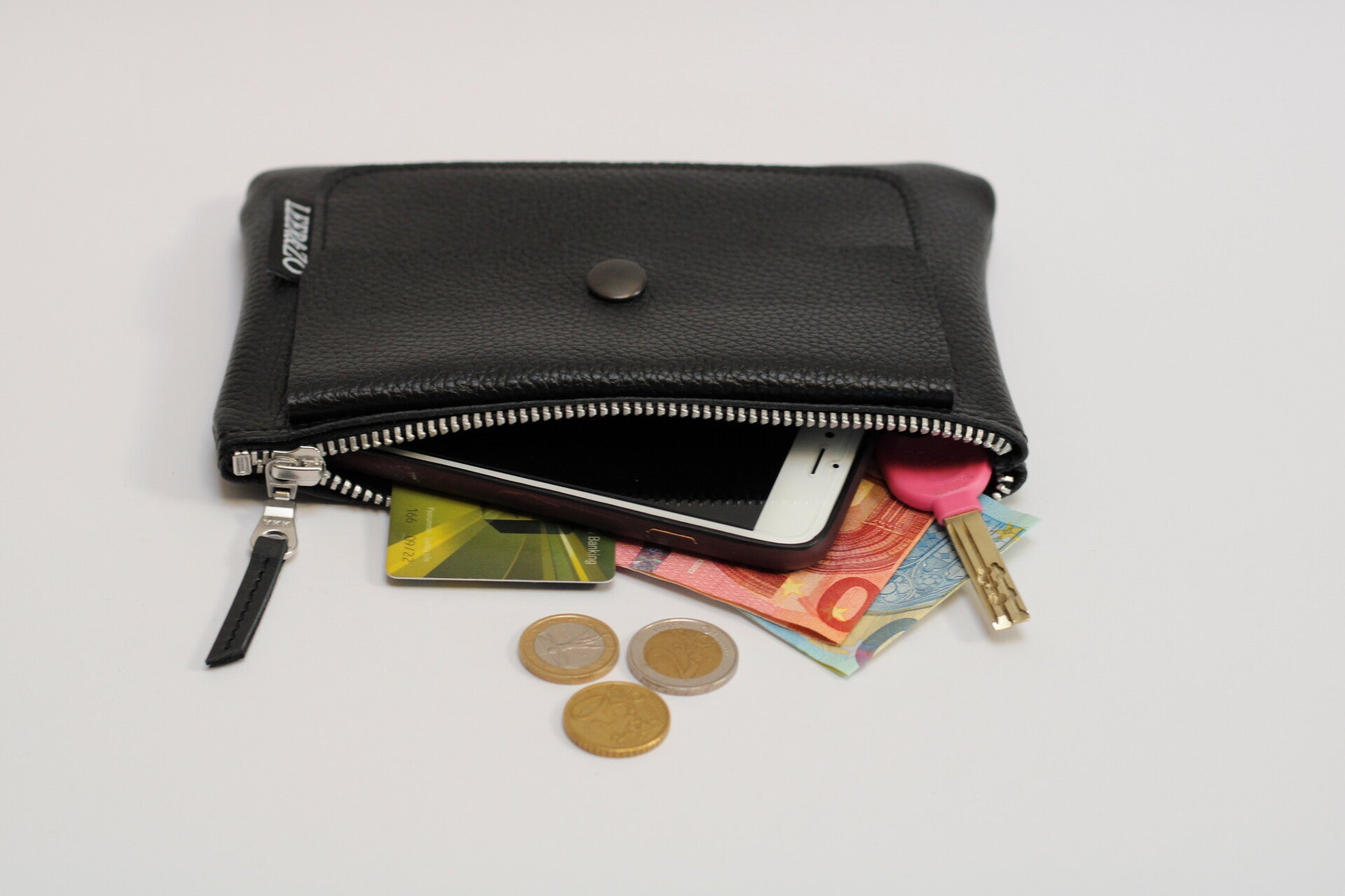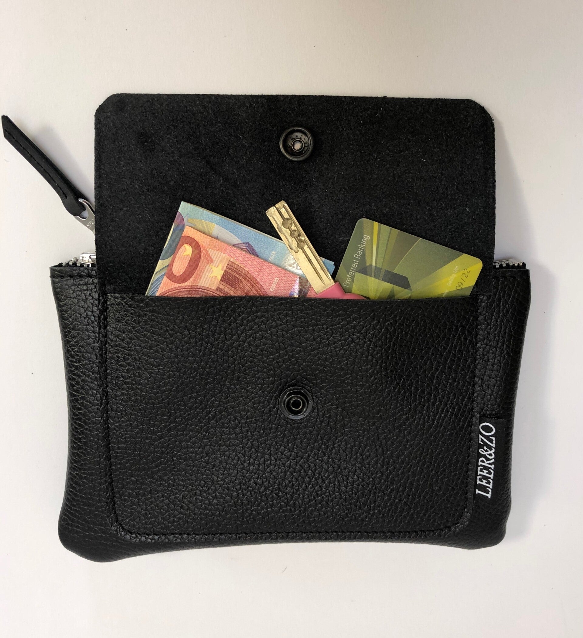 De heuptas is voorzien van ruime binnen vak met 3 creditcard vakjes. En met een handig vakje op de voorzijde. De heuptas sluit doormiddel van een rits aan de bovenzijde.