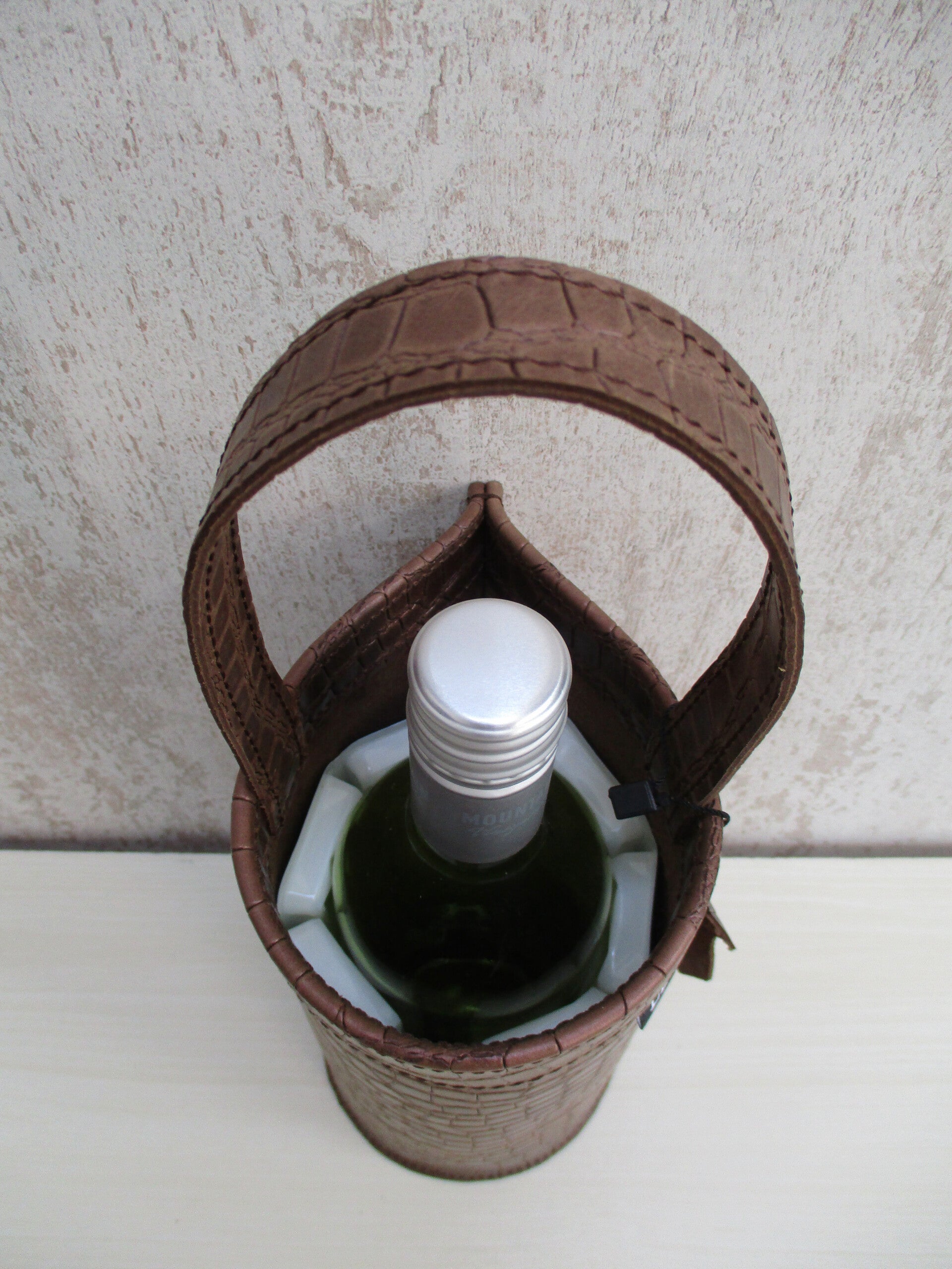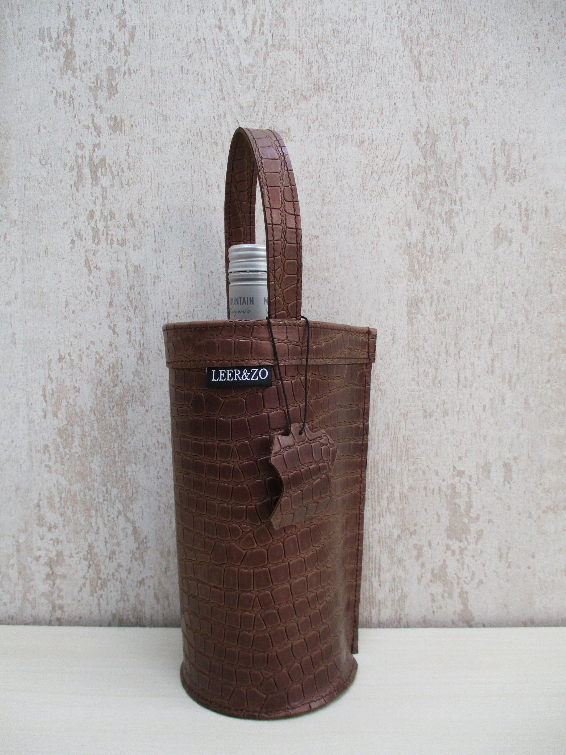 Stijlvolle en originele wijnkoeler gemaakt van een sublieme kwaliteit donkerbruin leer met Mamba print. De wijnkoelers van LEER&ZO zijn uniek en handgemaakt in eigen atelier. Onwijs leuk cadeau om te geven of te krijgen!