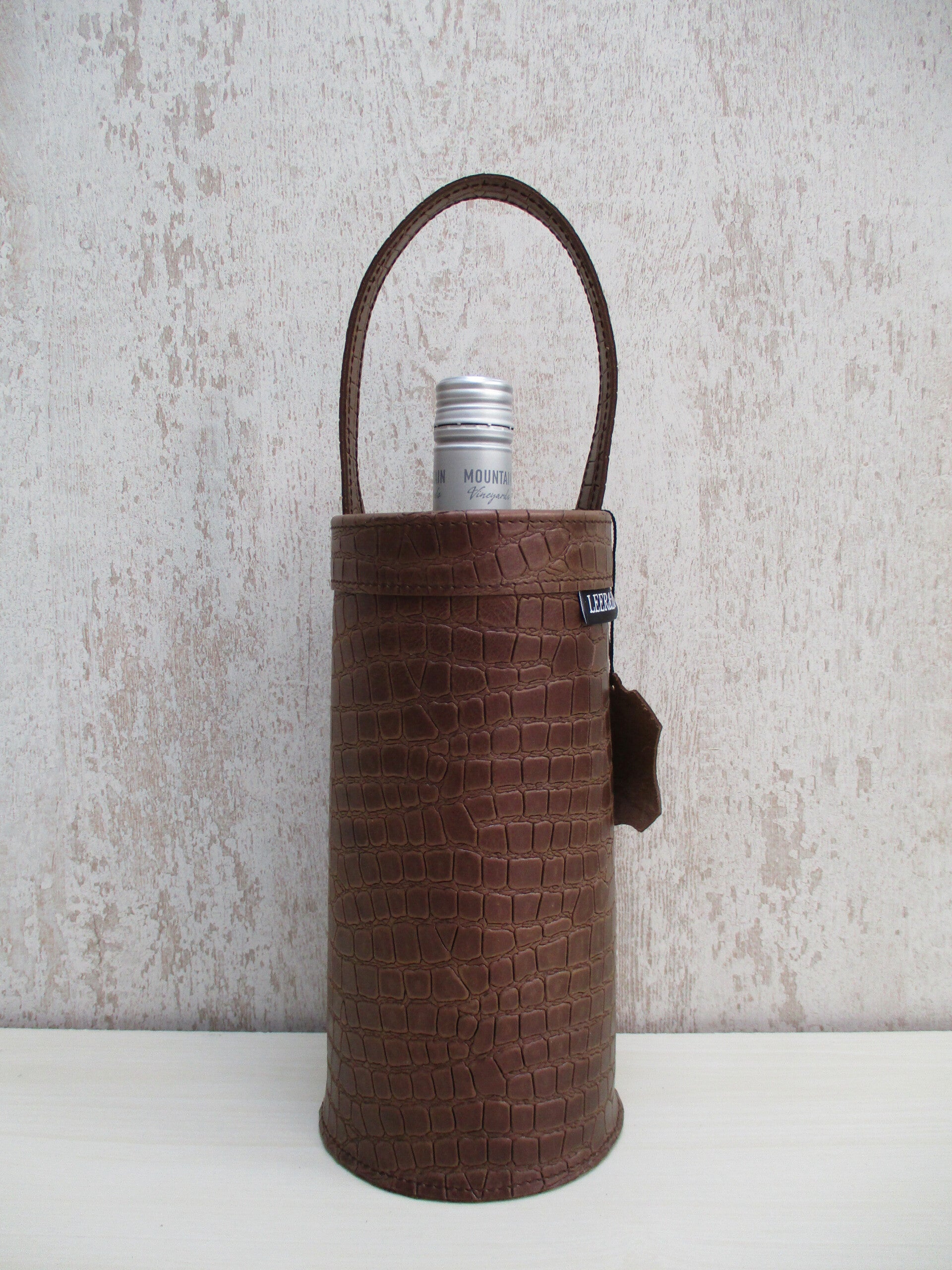 Leren wijnkoeler donkerbruin