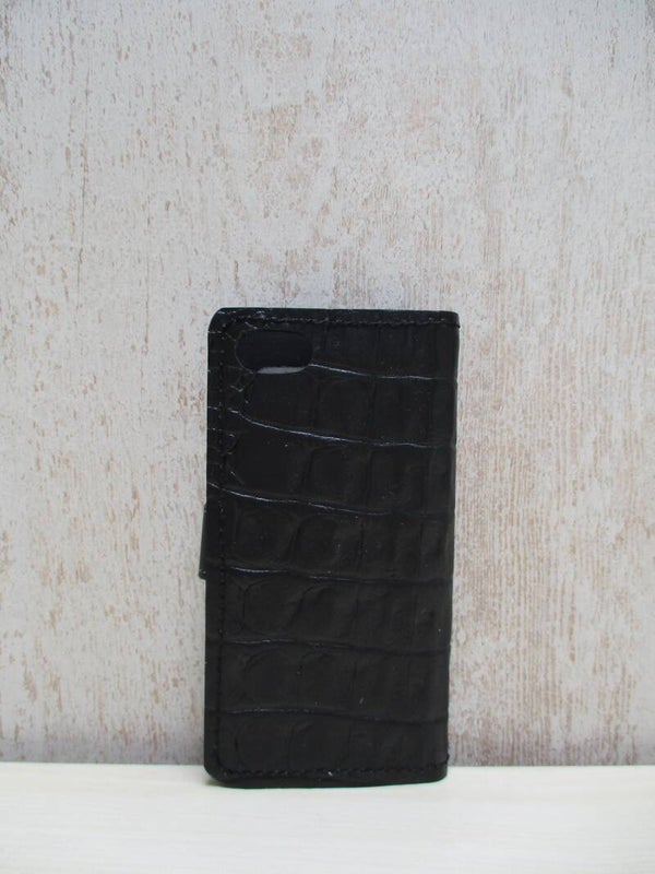 Book-cases geschikt voor de iPhone 6/6S/7/8 en voorzien van mooi zwart leer met croco print. Aan de binnenzijde is er ruimte voor 2 passen. En voorzien van een onbreekbare siliconen houder.