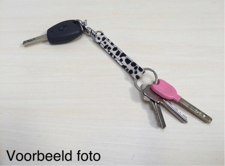 Super handige sleutelhanger, aan de ene kant een sleutelring en aan de andere kant een handige clip om je sleutel er makkelijk & snel vanaf te halen. Verkrijgbaar in diverse mooie dierenprints en koeienhuid.