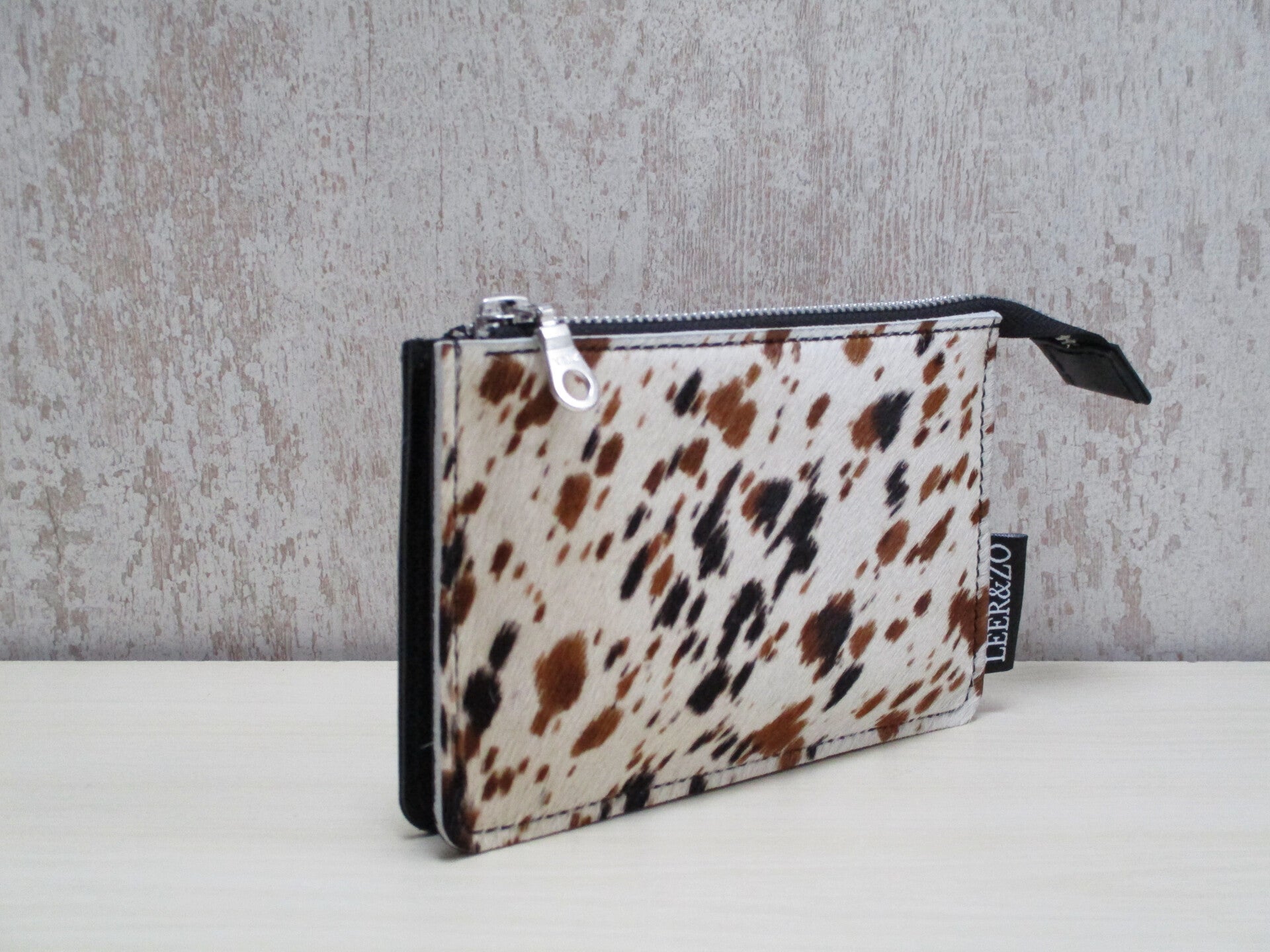 Leren portemonee gevlekte koeienhuid