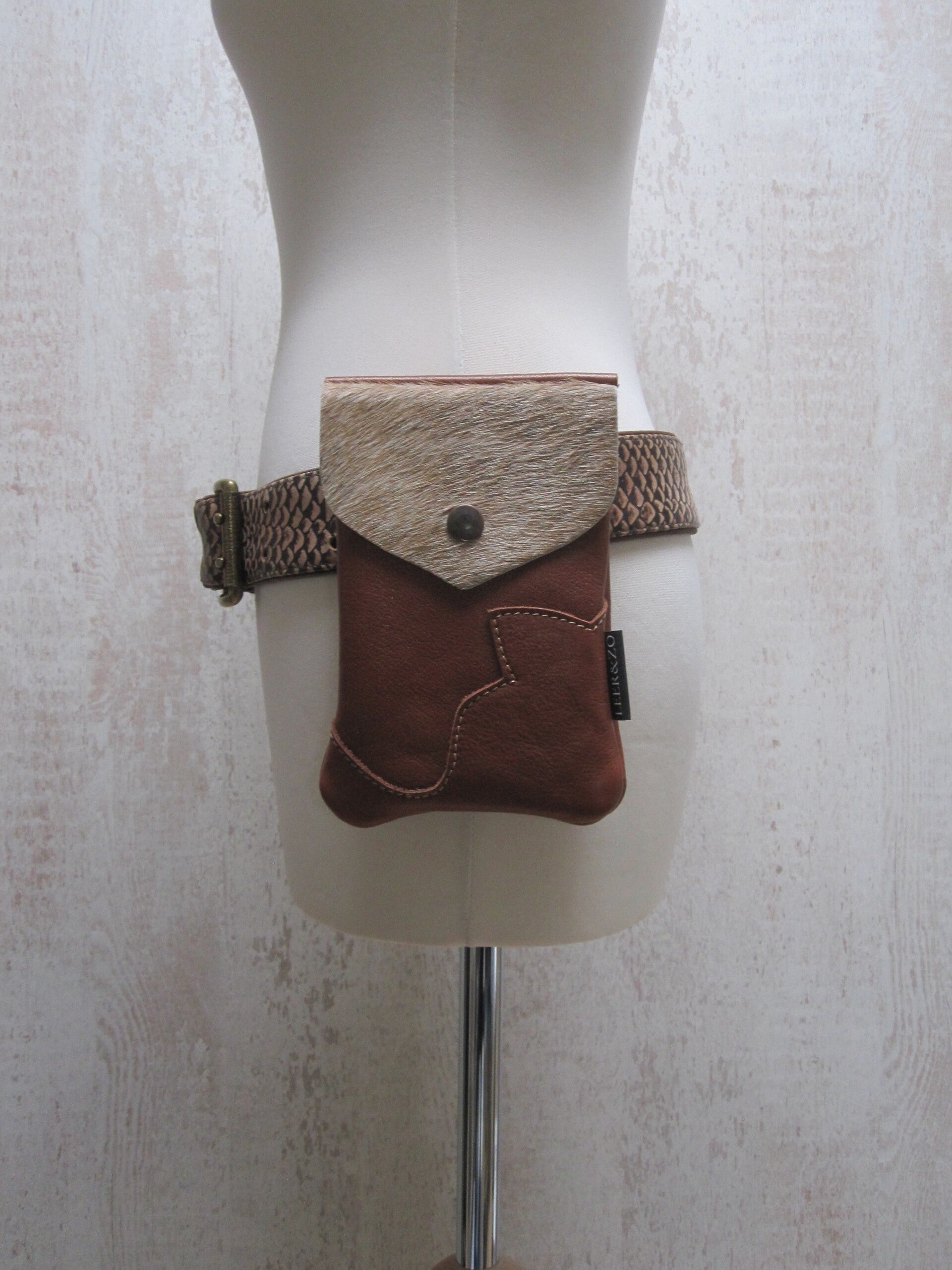 Stoere leren heuptas voor aan je riem. Heeft van achteren een brede lus en daarom geschikt voor zelfs de brede riemen. Erg handig voor de aankomende zomerfestivals, vakantie, terrasje, uitgaan of op de fiets. Groot genoeg om al je belangrijke spullen in op te bergen zoals: mobiel, geld, sleutels, pasjes, etc. Heerlijk je handen vrij en toch alle belangrijke spulletjes bij de hand! Sluit met een mooie drukknoop.