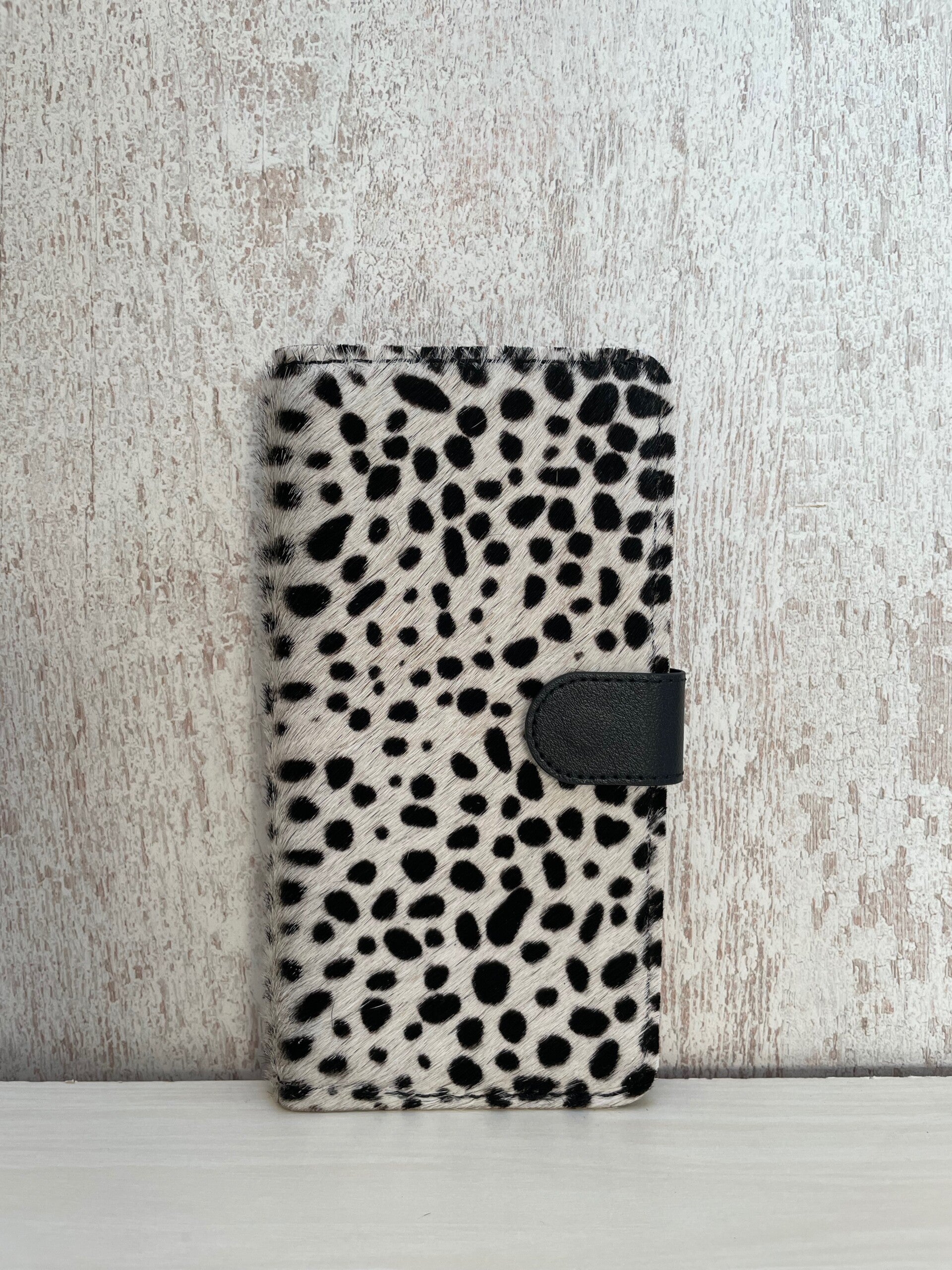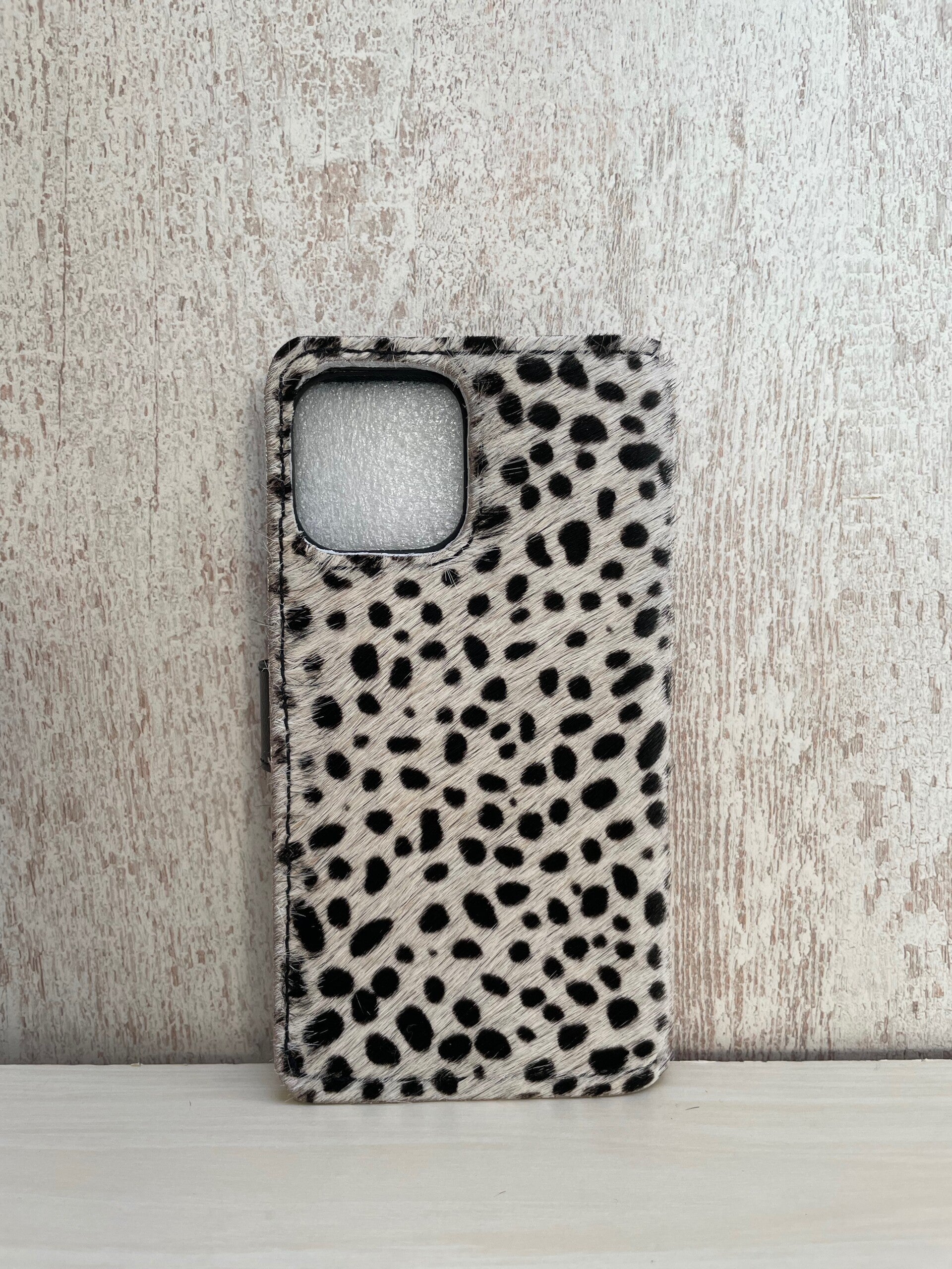 Prachtige leren Book-cases geschikt voor de iPhone 13 Pro Max. En voorzien van mooi dotsprint koeienhuid. Aan de binnenzijde is er ruimte voor 3 pasjes. En voorzien van een onbreekbare siliconen houder. Sluit doormiddel van een magneetsluiting.