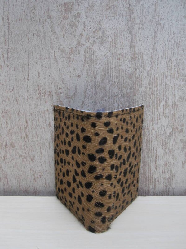 Praktisch en handzaam creditcard mapje. De voor en achterzijde zijn geheel van mooi koeienhuid met cheetah print. Geschikt voor 20 pasjes. En aan de bovenzijde voorzien van handig geldvak. Met dit creditcard mapje hou je alle pasjes netjes bij elkaar houden zonder ze kwijt te raken.