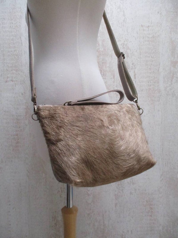 Schitterend handgemaakt ruime leren schoudertas en clutch in één. De schoudertas is te gebruiken als handig schoudertas en als stoere grote clutch. De voorzijde is van sublieme kwaliteit taupe koeienhuid en de achterzijde van mooi taupe leer. Schouderband is verstelbaar en voorzien van clips en makkelijk los te halen. Aan de bovenzijde voorzien van een stevige YKK rits.
