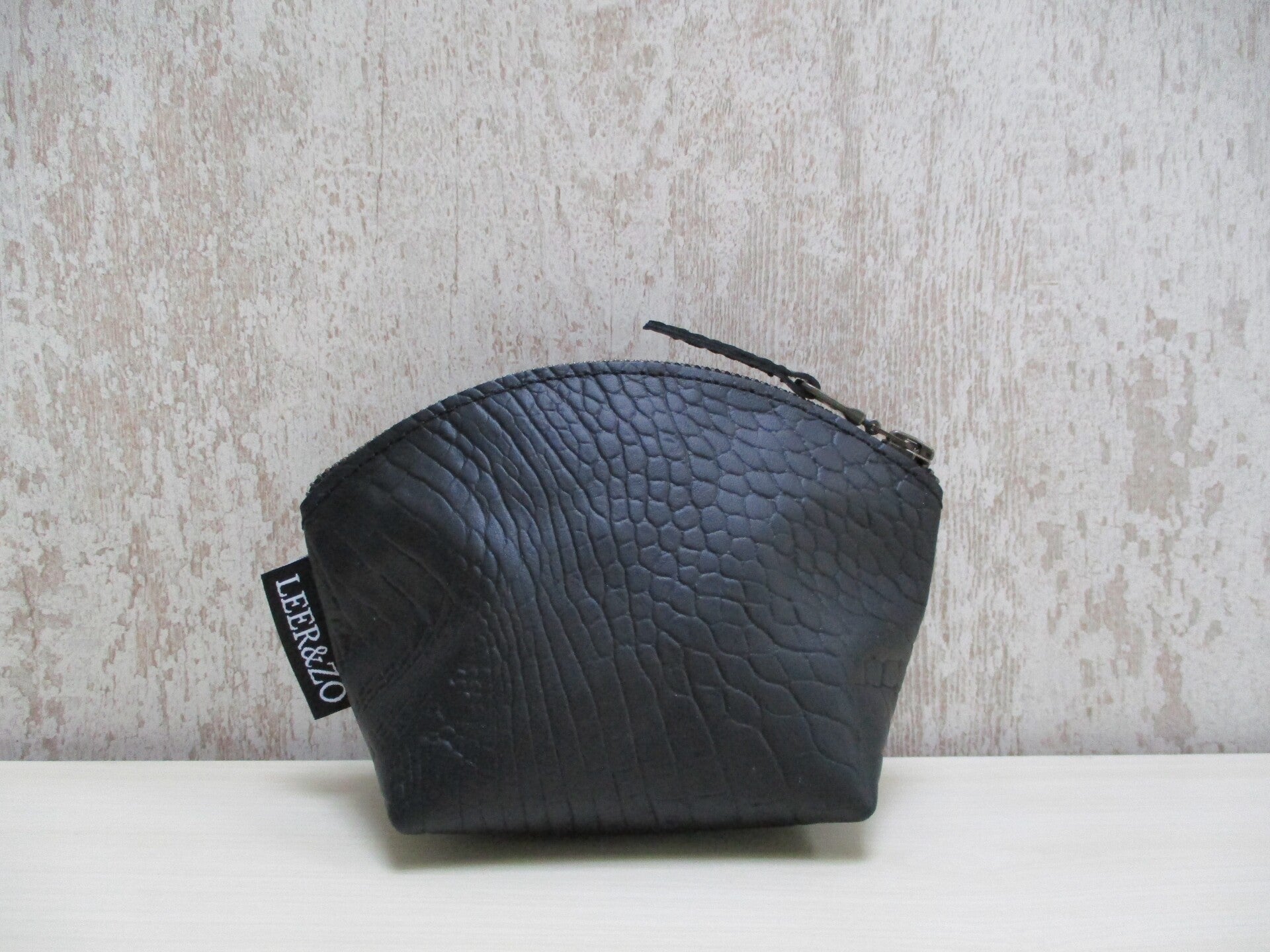 Super handig en stijlvol klein leren make-up tasje met zwart croco print. Het is een handig rond model waardoor je een goed overzicht hebt op al je make-up spulletjes. Het is een mooi formaat en dus ideaal om mee te nemen in je tas. Aan de bovenzijde voorzien van stevige YKK rits.