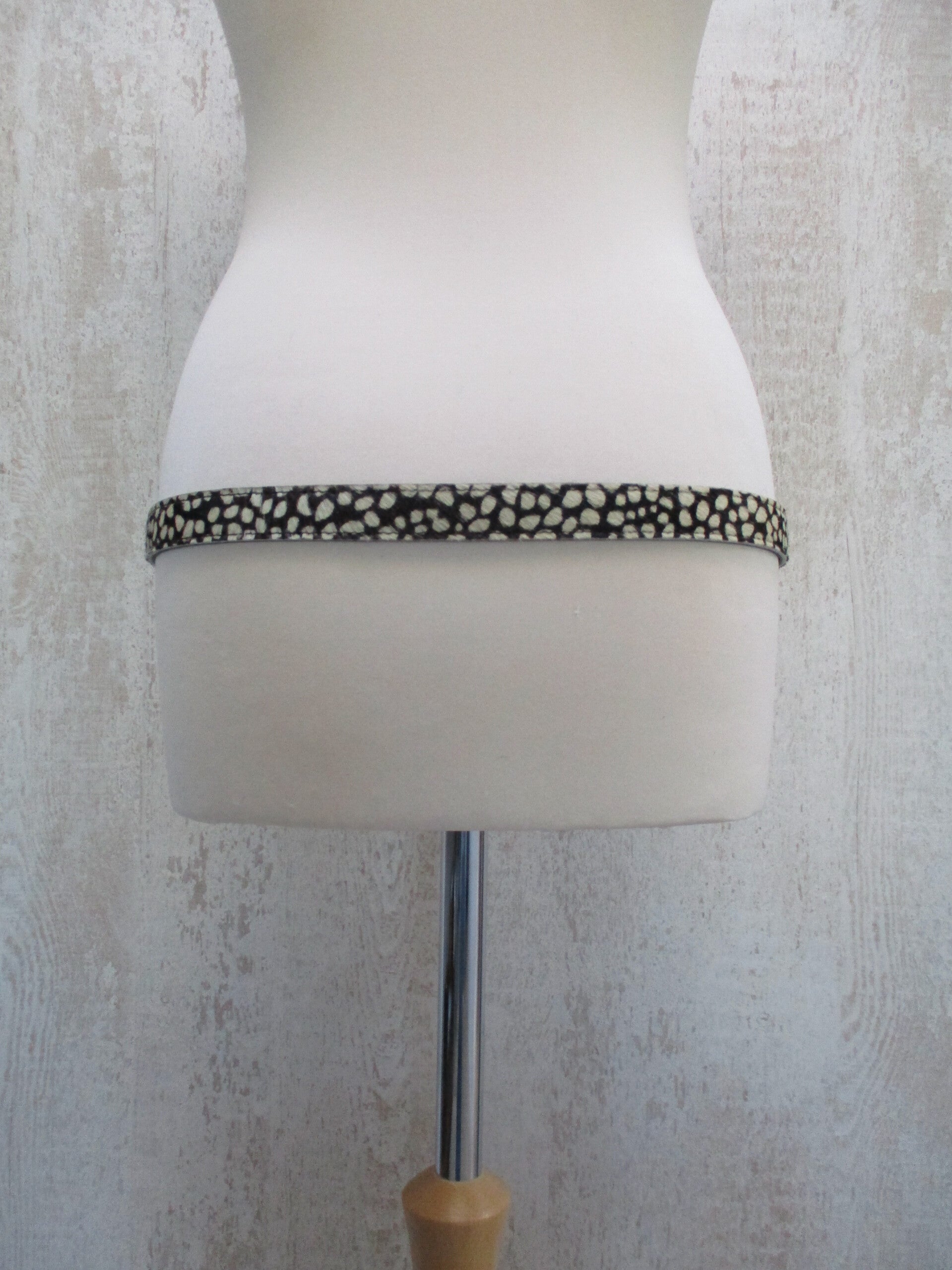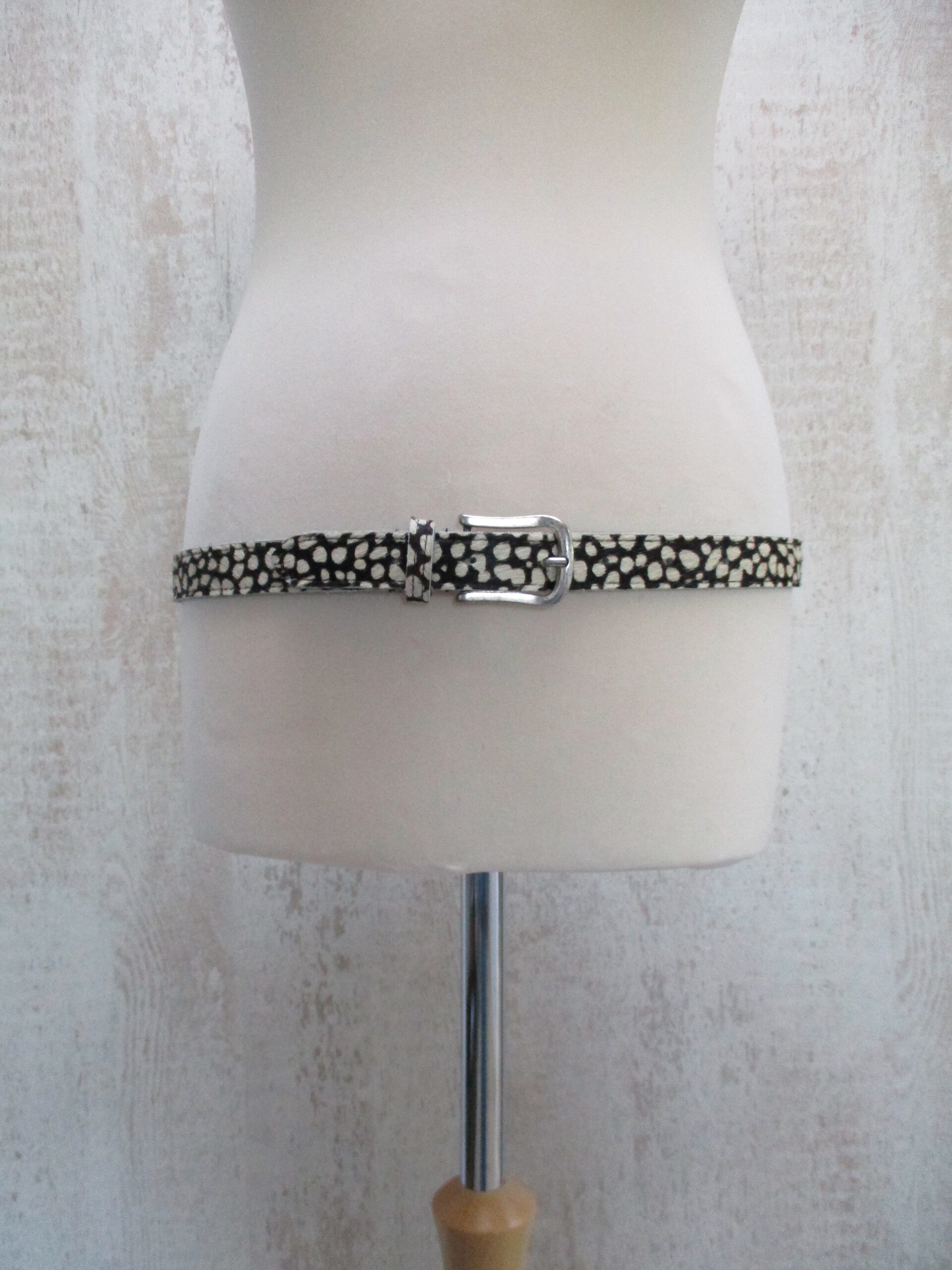 Mooie stijlvolle smalle damesriem met koeienhuid cheetah print. De riem is stoer te dragen op een jeans of lekker casual. En voorzien van een elegante zilveren gesp. De breedte van de riem is 2,5 cm.