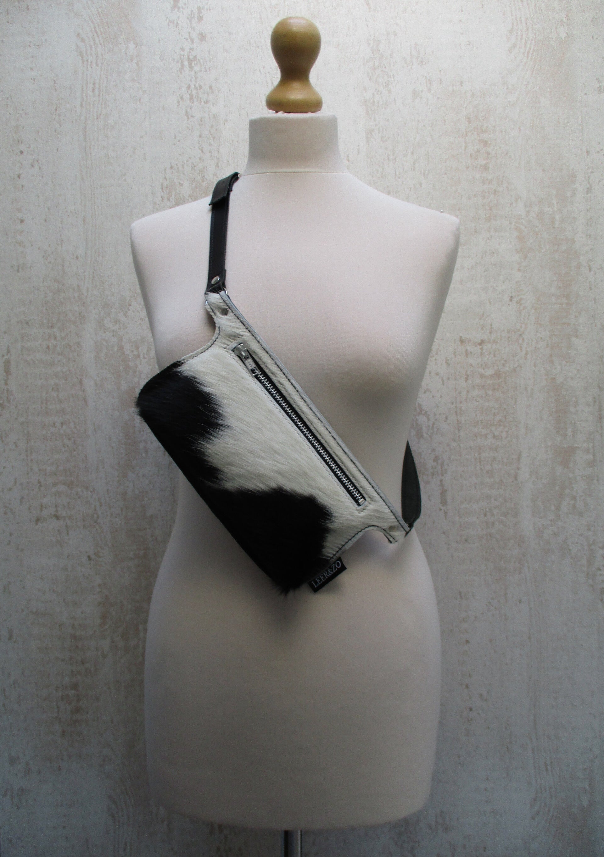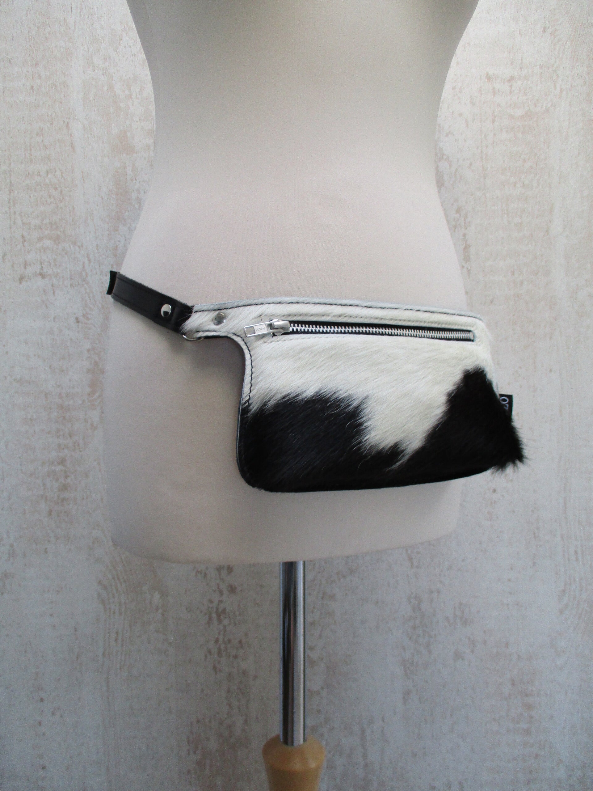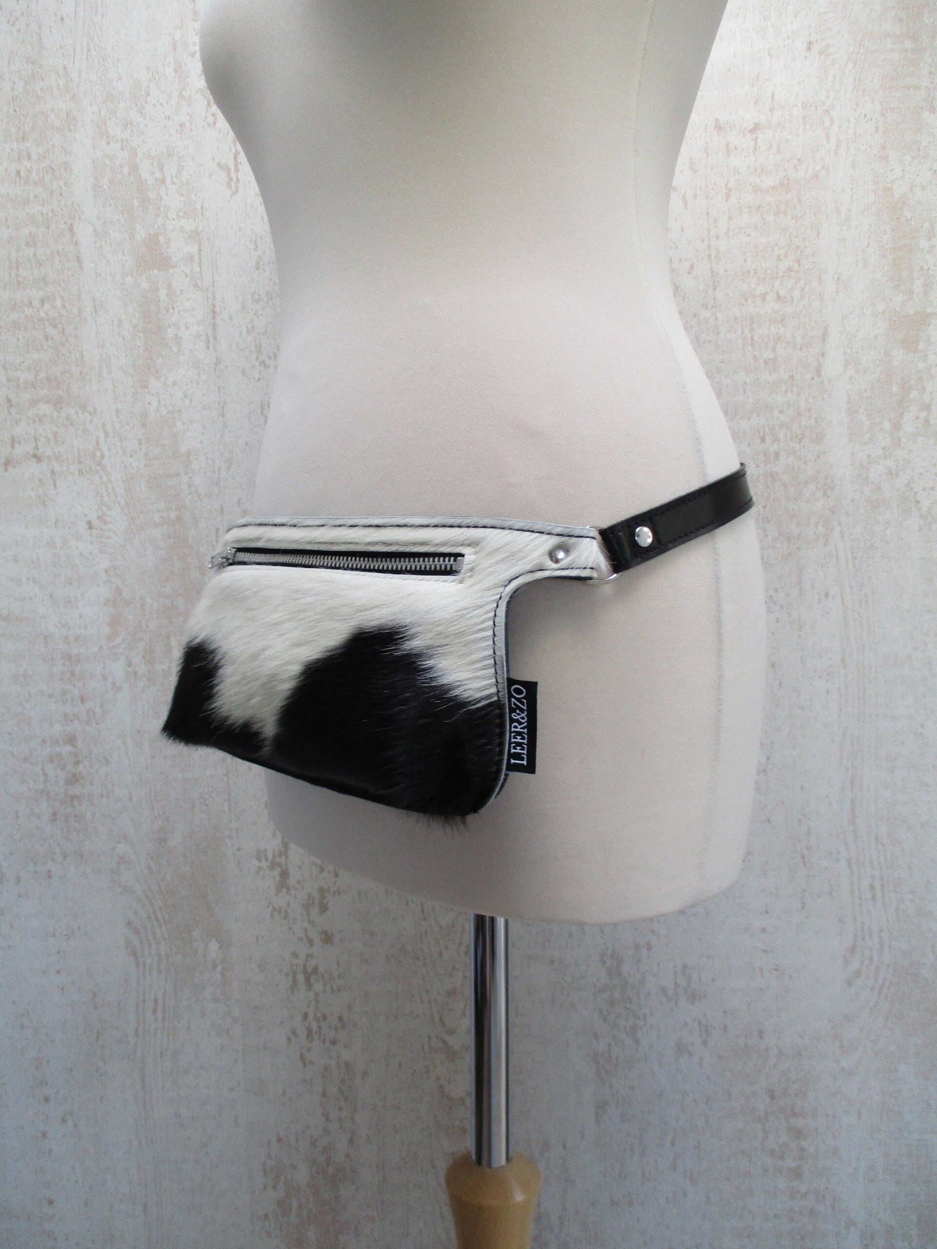 Deze super handige Fanny Pack is gemaakt van uniek zwart/wit koeienhuid. De band is verstelbaar, dus je kan je tas zowel om je heup als schuin op je borst dragen. Het voorvak is ruim genoeg om al je belangrijke spullen in mee te nemen. Hoe fijn met een drankje in je hand en heerlijk je handen vrij!