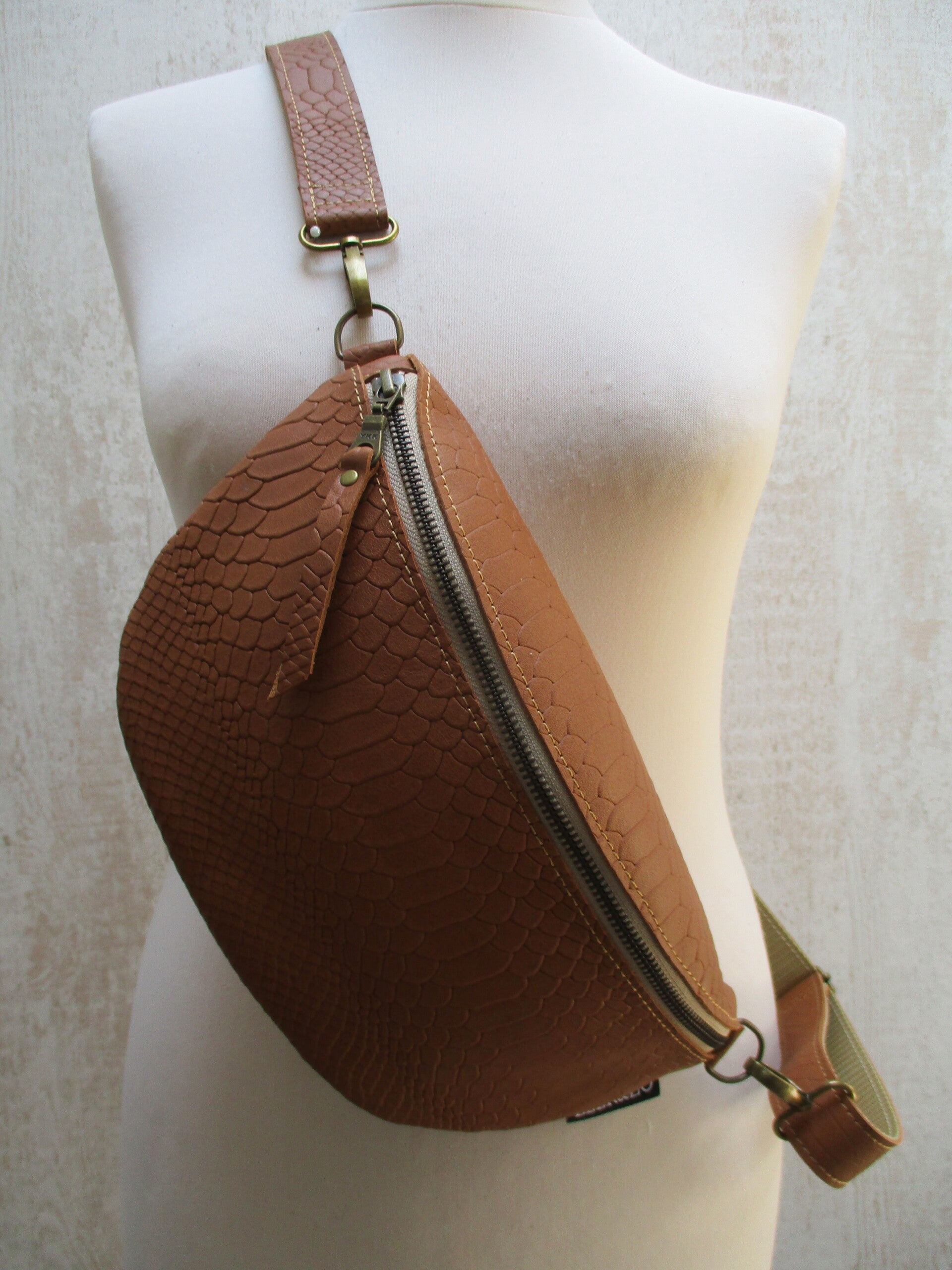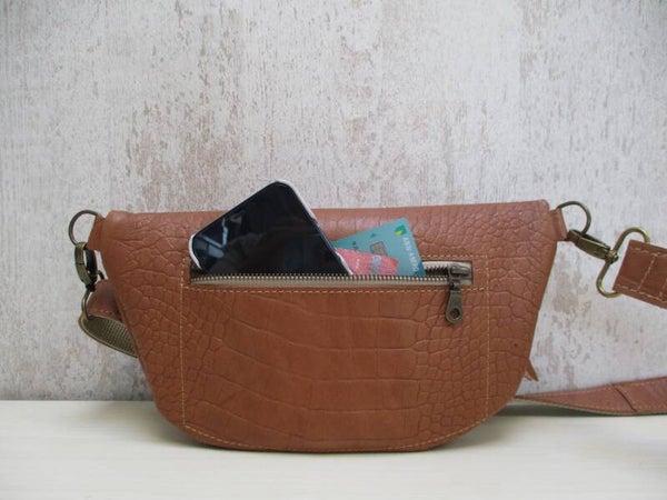 De fanny pack is ideaal voor festivals, vakantie of een dagje weg. Maar uiteraard ook te gebruiken in het dagelijks leven. De fanny pack is ontzettend handig en helemaal hip! De heuptas is voorzien van een ruim voorvak met op de achterzijde nog een anti-diefstal ritsvak. Gemaakt van prachtig duurzaam cognac leer met croco print.