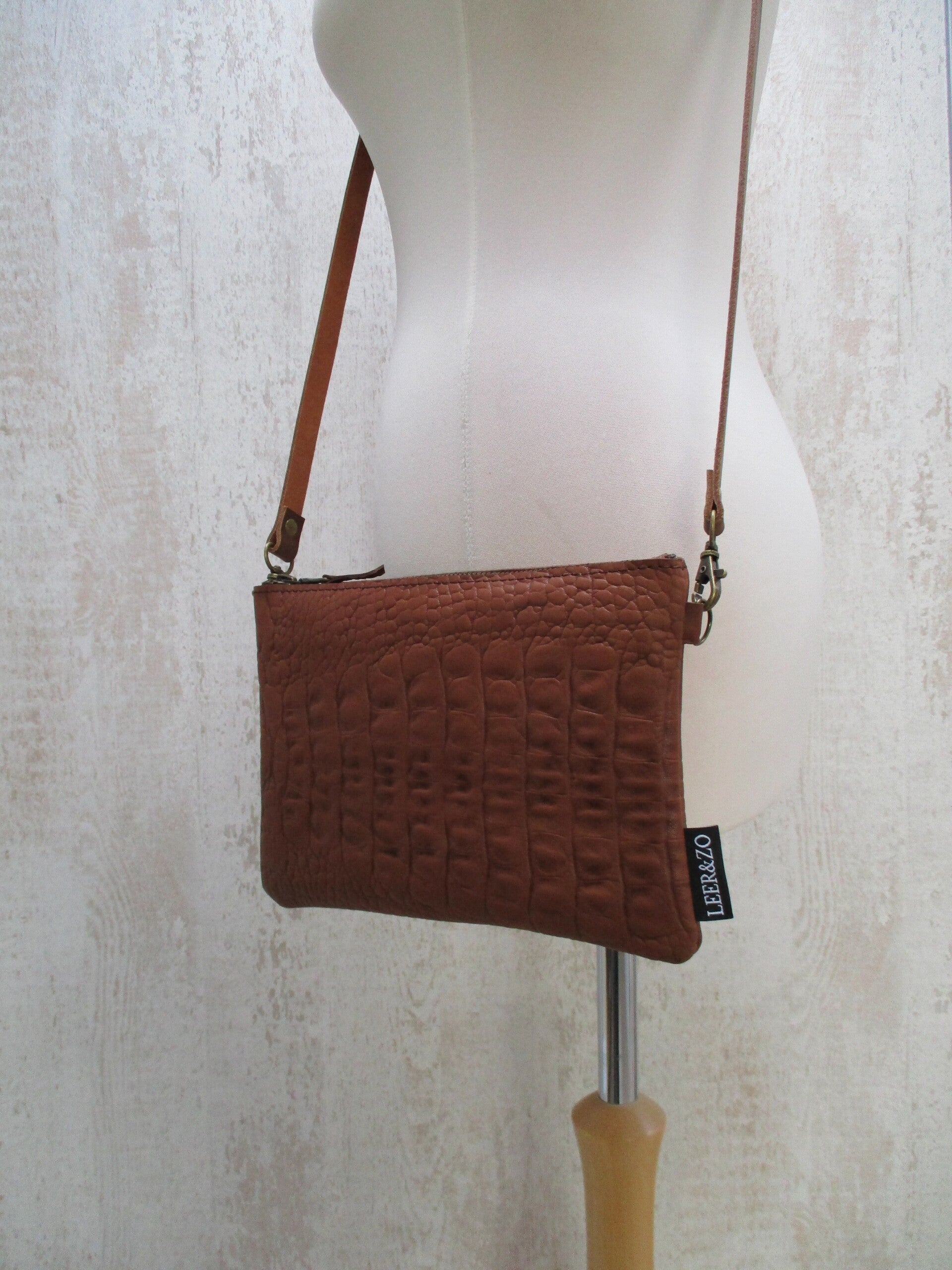 Deze prachtige schoudertas met donkerbruin croco print is heerlijk ruim. En heeft ruimte genoeg voor je portemonnee, sleutels, bril en nog veel meer. Aan de binnenzijde zit er een vakje voor bijvoorbeeld je mobiel en 2 handig vakken voor pasjes. Het tasje sluit doormiddel van een stevige YKK rits.