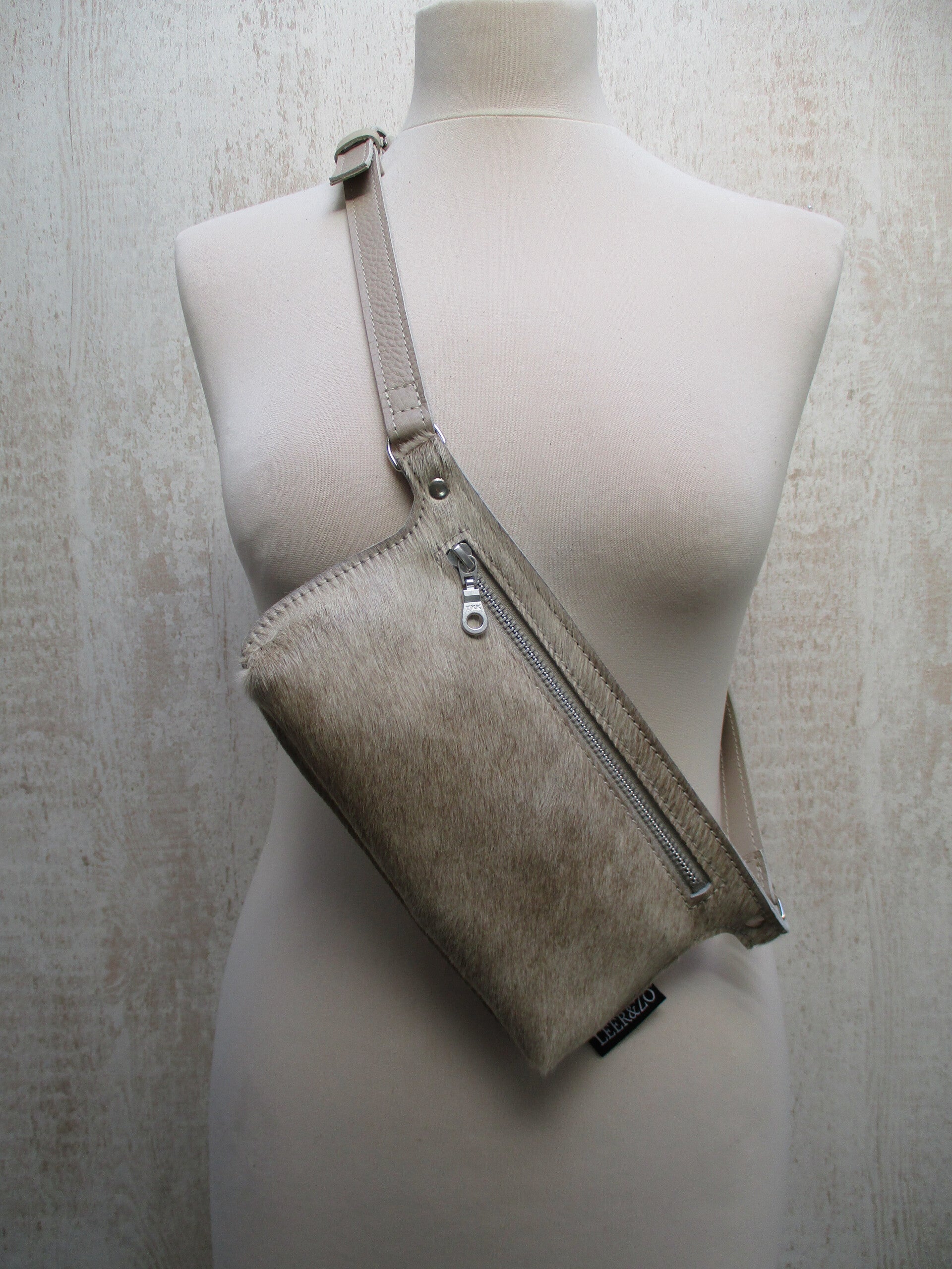 Deze super handige Fanny Pack is gemaakt van uniek beige koeienhuid. De band is verstelbaar, dus je kan je tas zowel om je heup als schuin op je borst dragen. Het voorvak is ruim genoeg om al je belangrijke spullen in mee te nemen. Hoe fijn met een drankje in je hand en heerlijk je handen vrij!