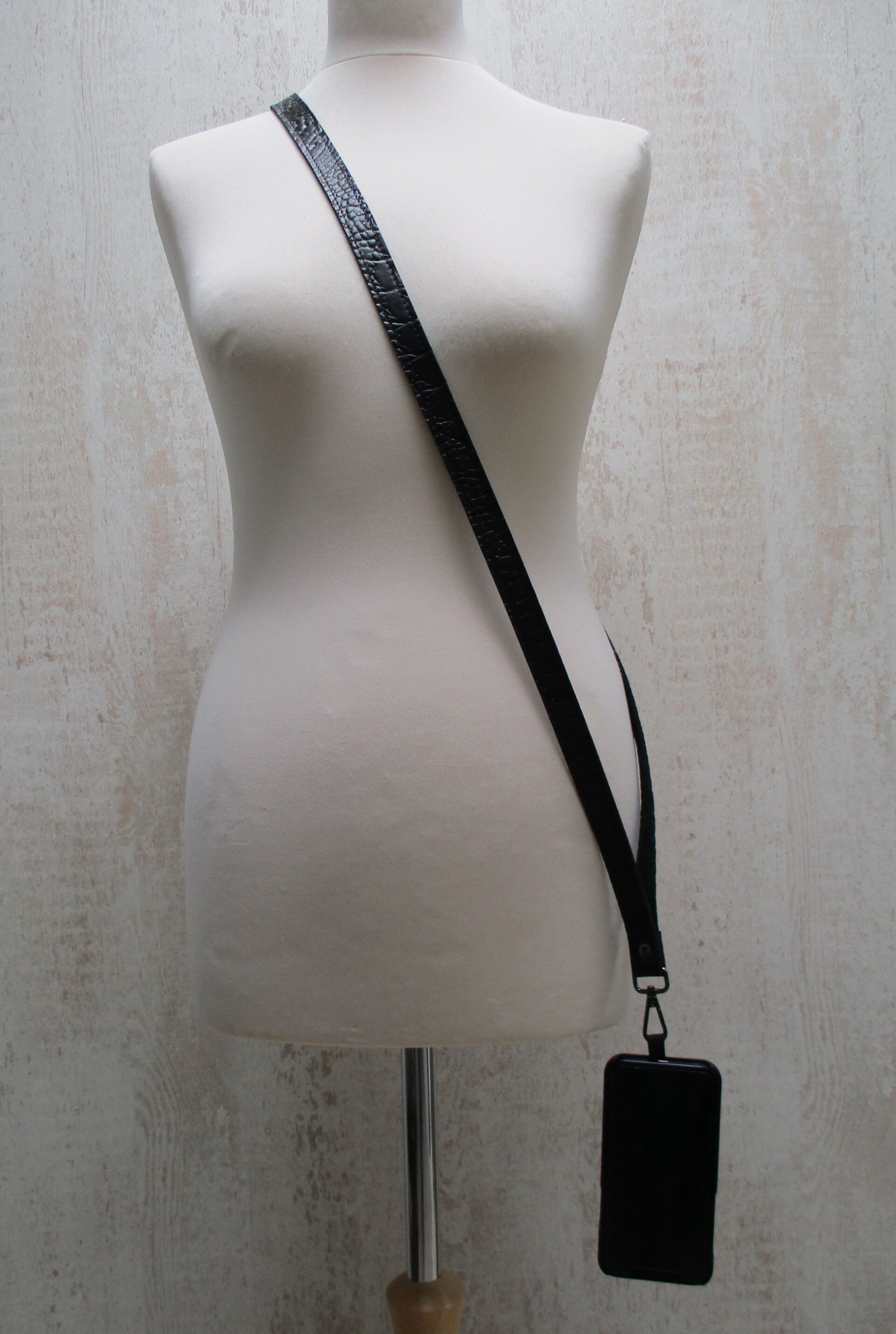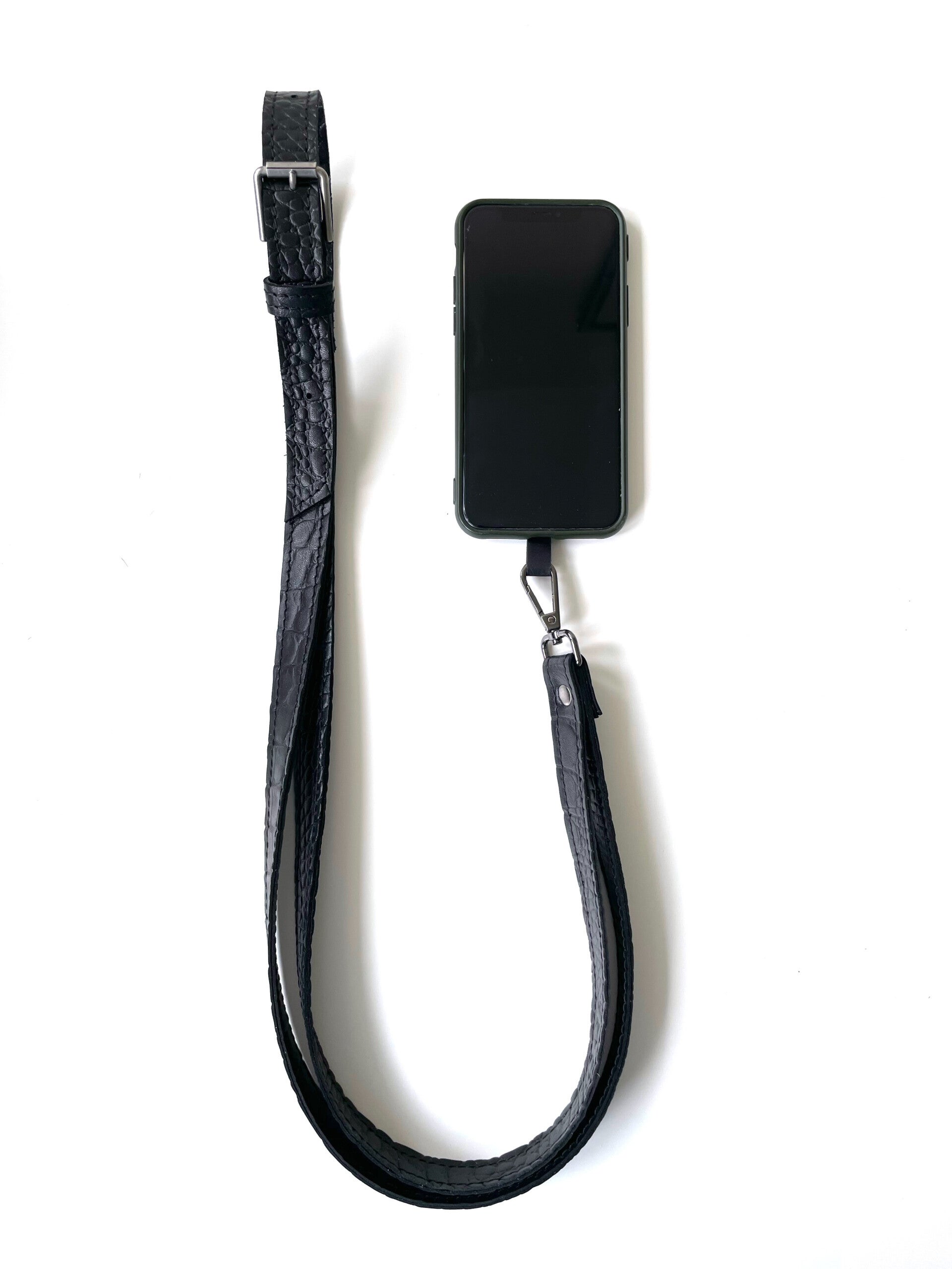 Telefoonkoord zwart croco breed 2 cm