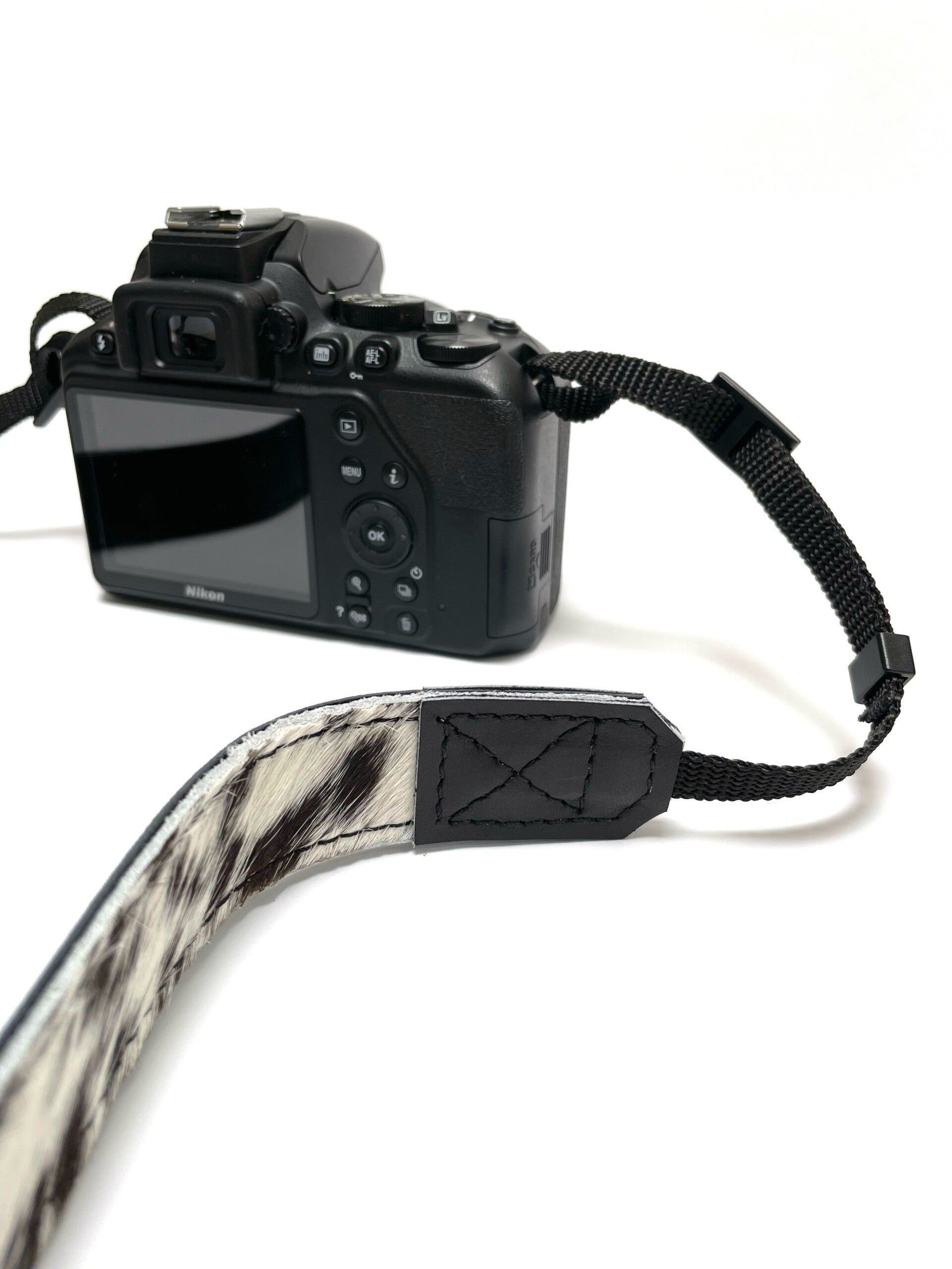 Ga stijlvol op pad met deze prachtige camerariem. De camerariem is gemaakt van uniek zwart/wit koeienhuid. Aan de onderzijde voorzien van zacht soepel zwart leer. De strap wordt geleverd met universele verstelbare gespen, zodat die voor vrijwel geschikt is voor de meeste camera merken (DLSR / Nikon/ Canon / Sony)