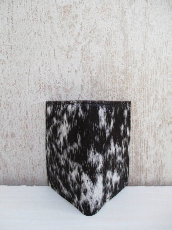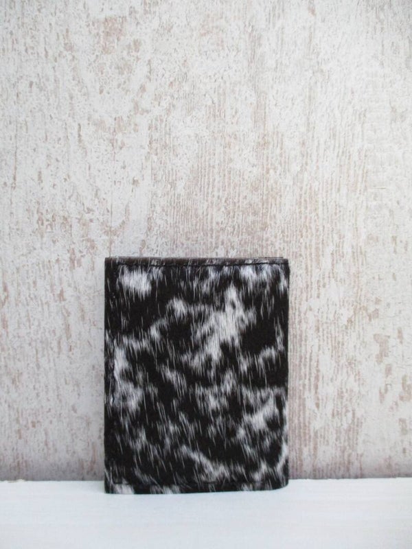 Praktisch en handzaam creditcard mapje gemaakt van uniek zwart/wit koeienhuid. Het creditcard mapje is geschikt voor 20 pasjes, en aan de bovenzijde voorzien van handig geldvak.