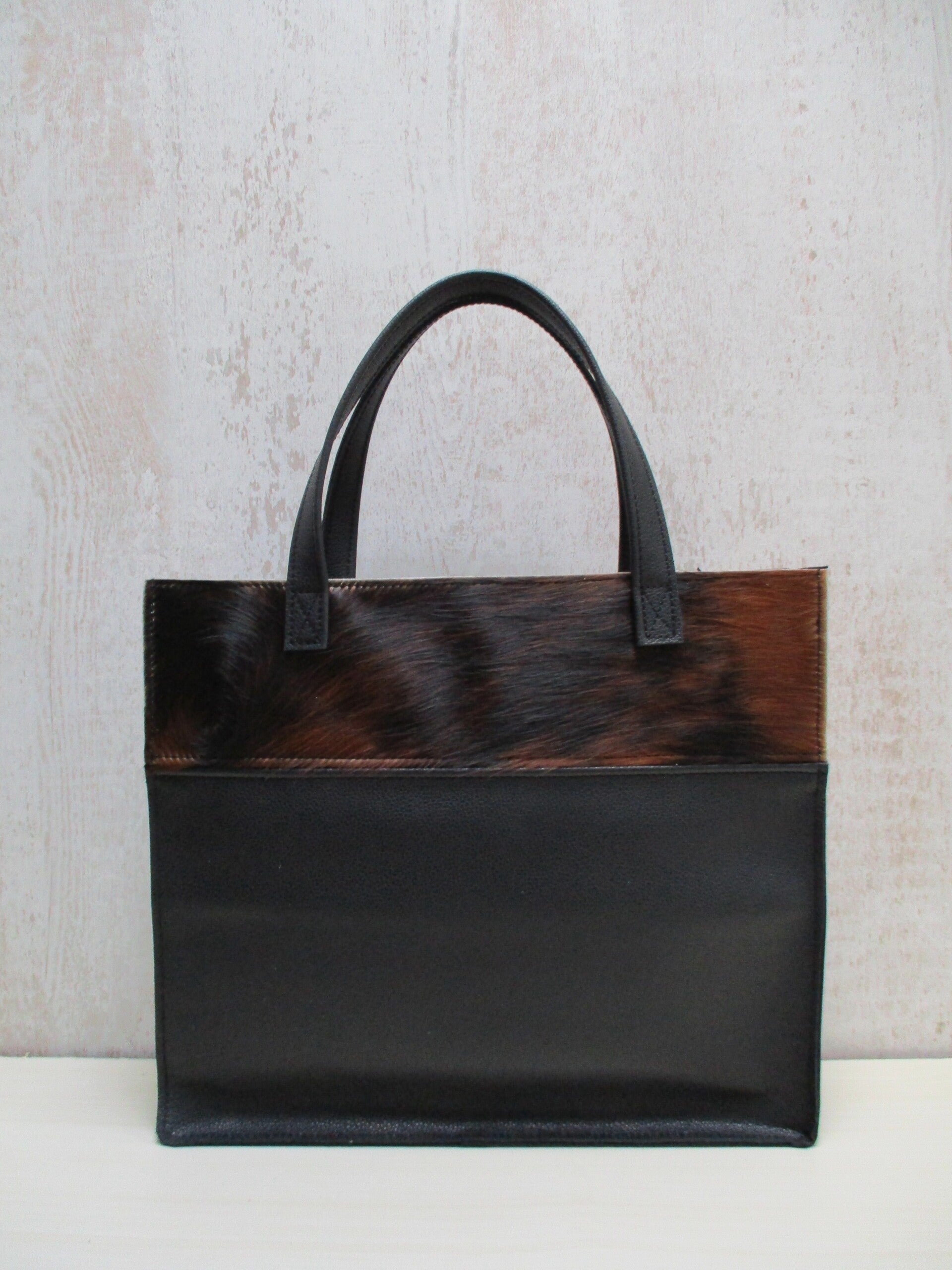 Prachtige leren laptop tas gemaakt van sublieme kwaliteit zwart leer. Met aan de bovenzijde uniek tricolor koeienhuid. Deze geweldige tas is multifunctioneel en heerlijk ruim. Te gebruiken als laptoptas/studietas of gewoon als shopper. Er is ruimte genoeg voor laptop, schrijfmap, agenda en andere spullen.