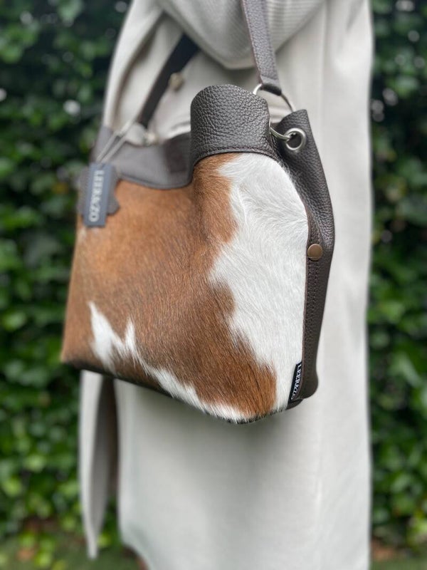 Bruin leren buideltas koeienhuid bruin/wit 2