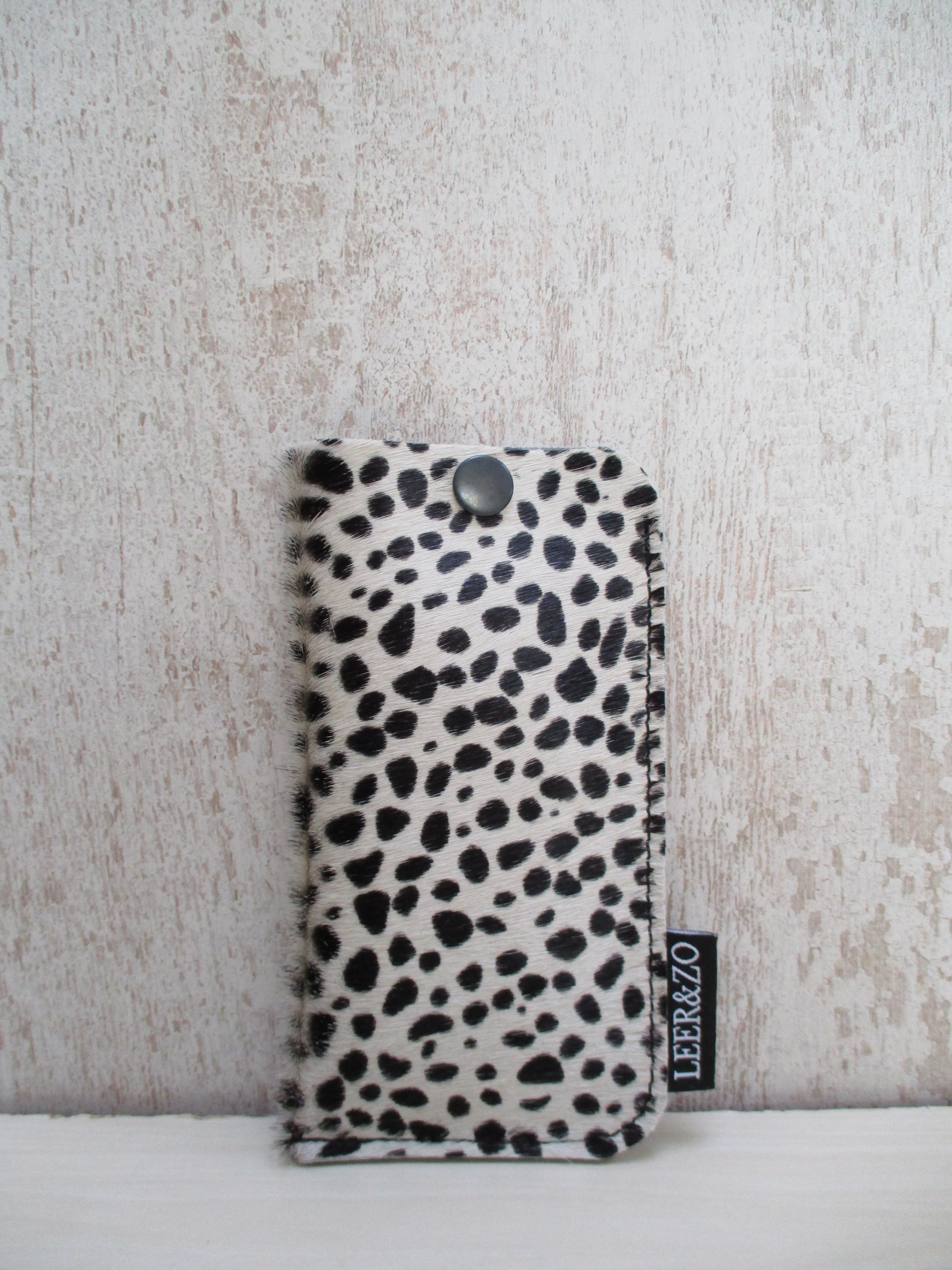 Bescherm je bril of zonnebril in deze stijlvolle leren brillenhoes, gemaakt van prachtig koeienhuid met dots print. In deze brillenhoes is je bril netjes en veilig beschermd tegen vallen, stoten en krassen. Sluit doormiddel van een drukknoop aan de bovenzijde.